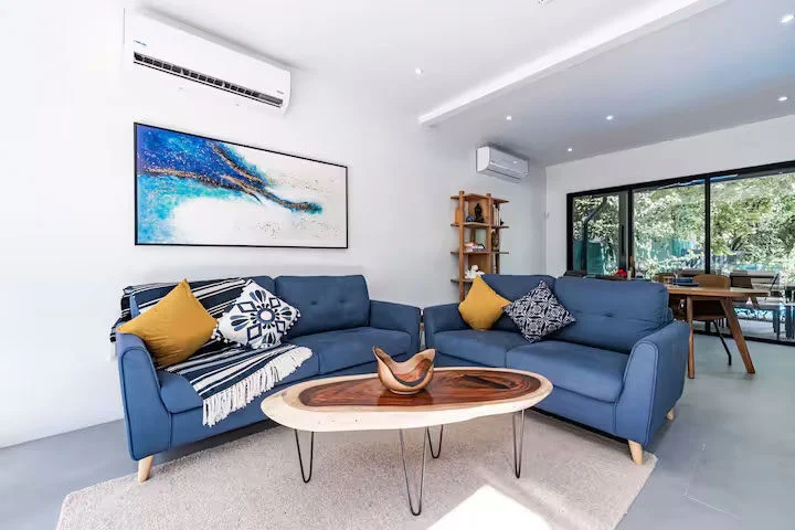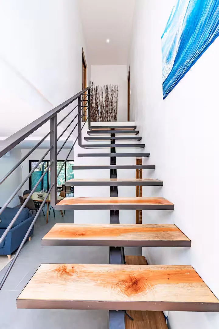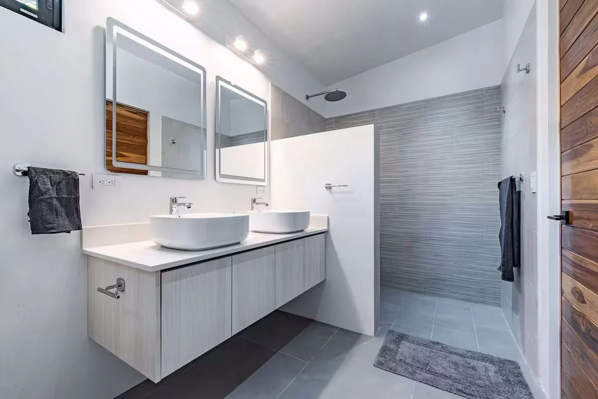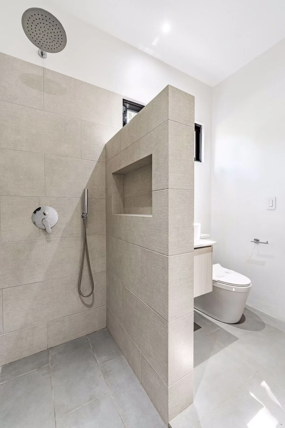 The master bedroom is generously spacious, providing ample room for you to unwind and rejuvenate. It features a plush king-size bed built from local Guanacaste wood and dressed with high-quality linens and pillows, ensuring a restful night’s sleep. The room is adorned with carefully chosen artwork and décor to evoke a sense of tranquility. Connected to the master bedroom is a private ensuite bathroom, designed for your convenience and privacy. It boasts modern fixtures, a spacious walk-in shower and double vanity.