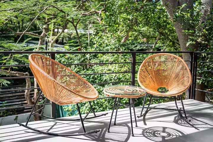 The private balcony offers panoramic views of our surroundings. You’ll be treated to ever-changing scenery that will make your stay truly memorable.