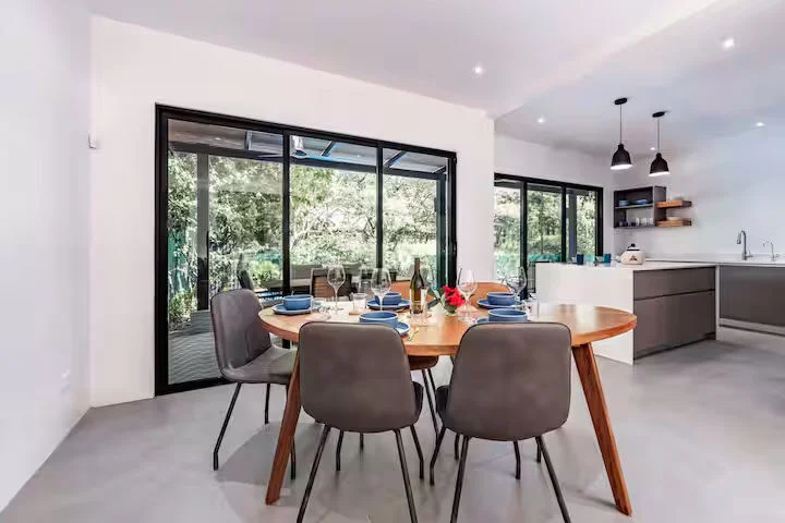 Adjacent to the kitchen is our cozy dining area, where you can savor your culinary creations. The well-lit space is perfect for intimate meals or entertaining guests.