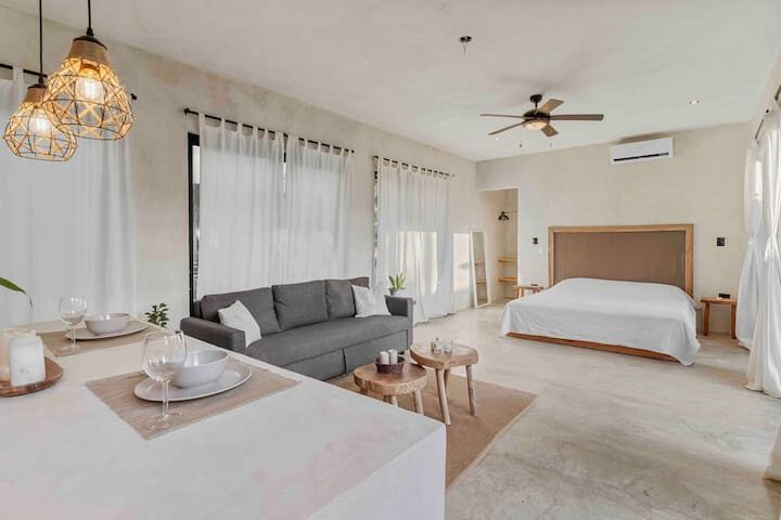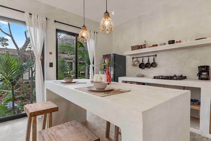 Enjoy the lush tropical paradise of El Valle in comfort with your own kitchen, wifi and AC. These are the most equipped rooms in El Valle just a 5 minute walk from the beach nestled under a canopy of coconut trees.