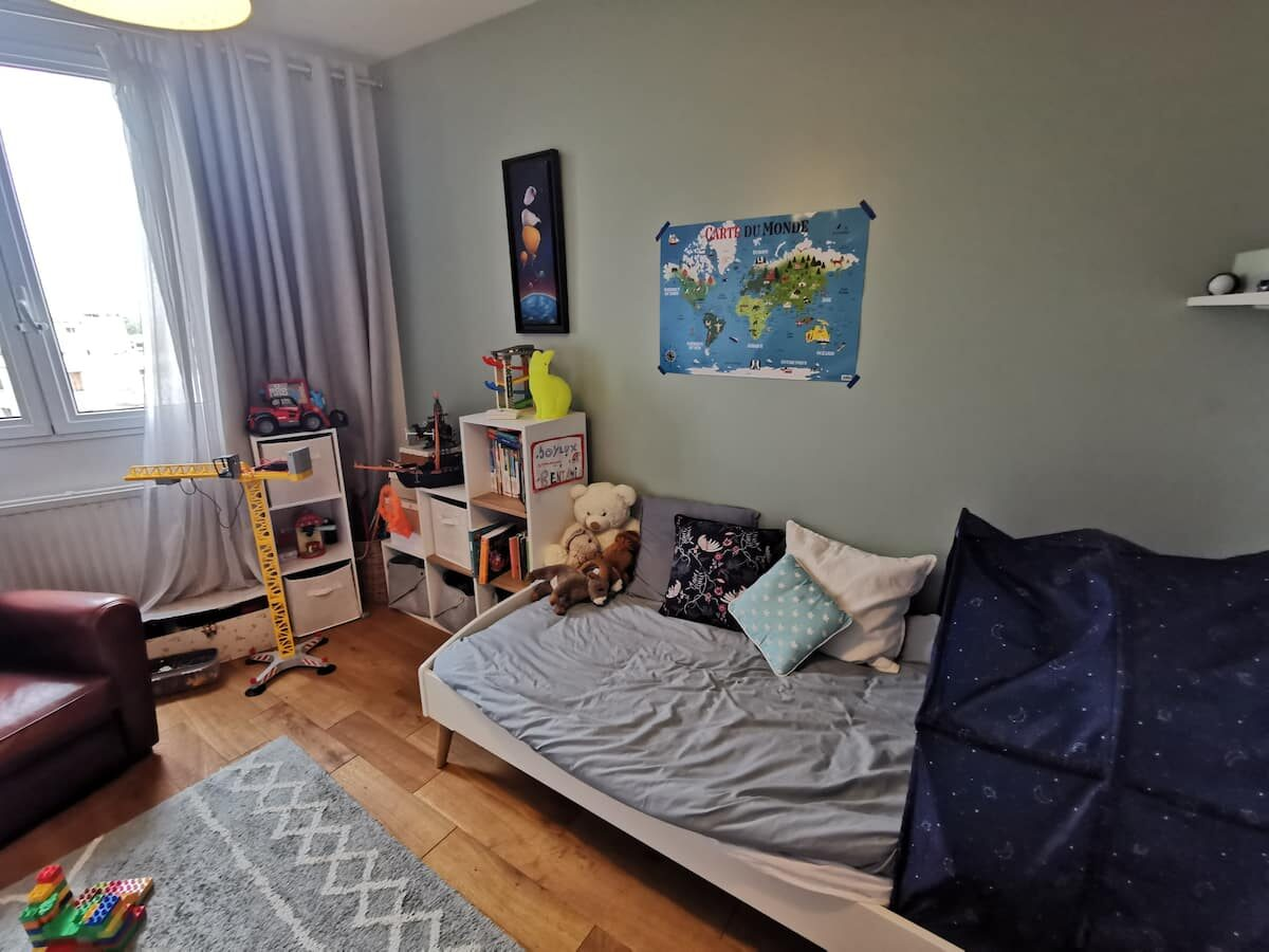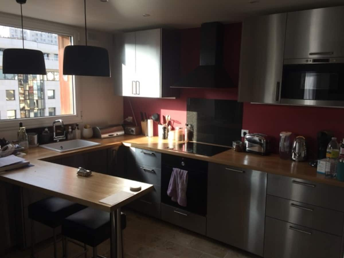 The apartment has double exposure on a high floor. It is very bright and overlooks a square. The main living room is 25 m2. It was refurbished in 2016; 2 bedrooms of 14 m2 each