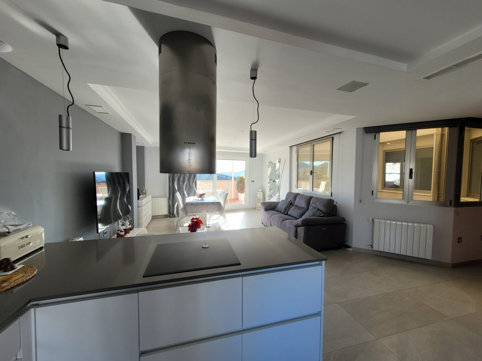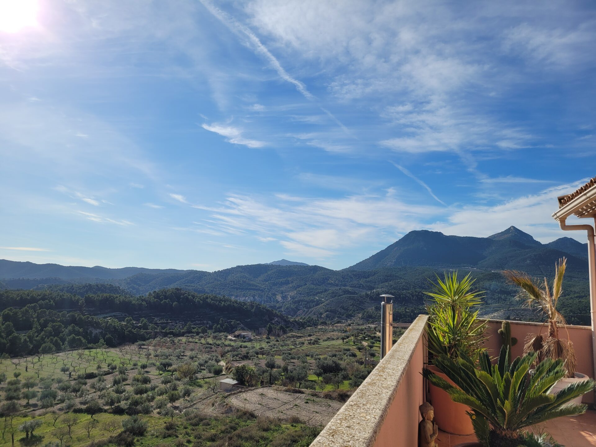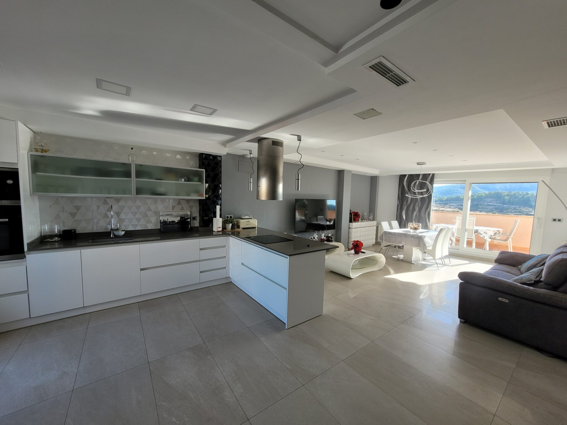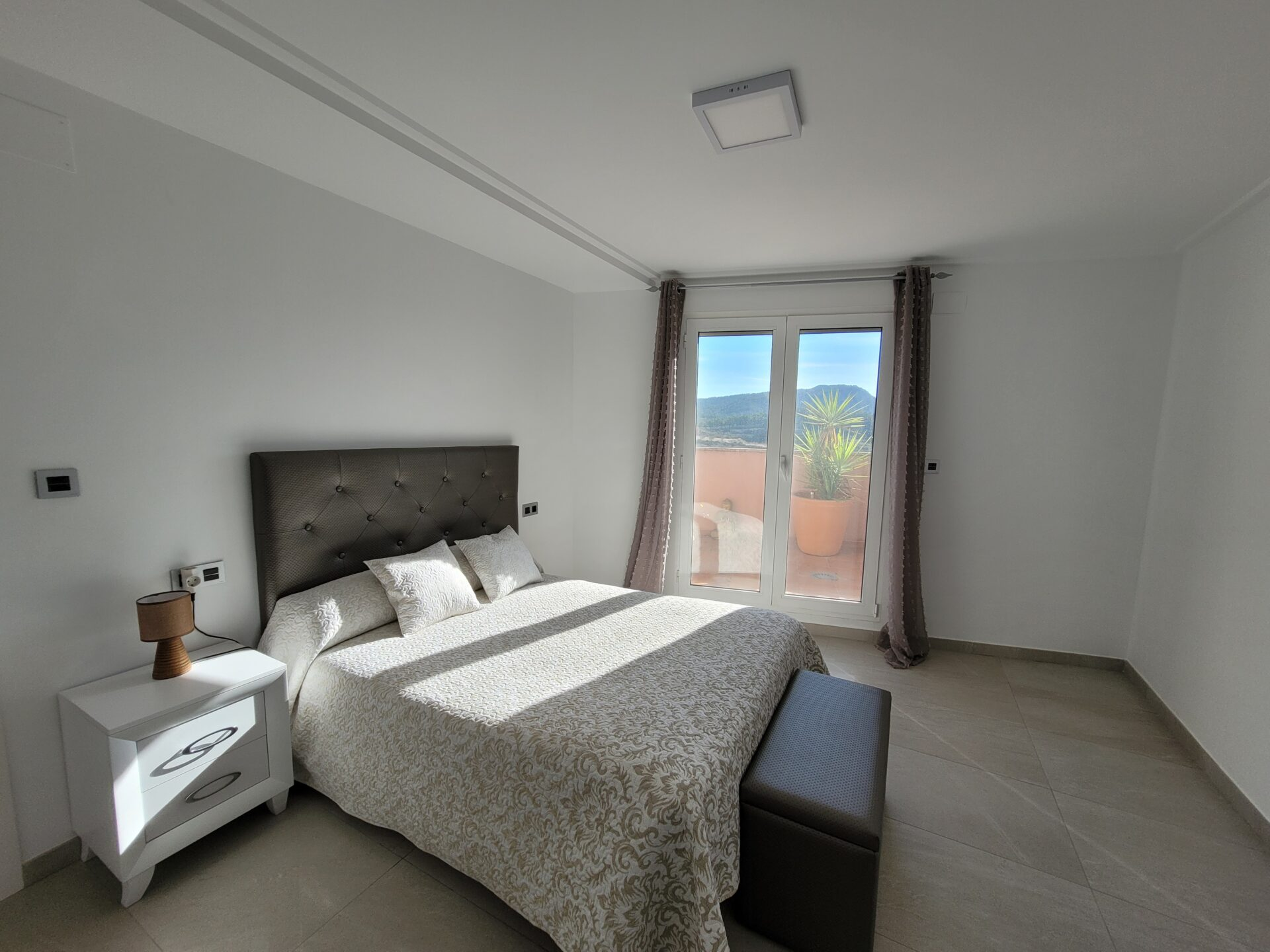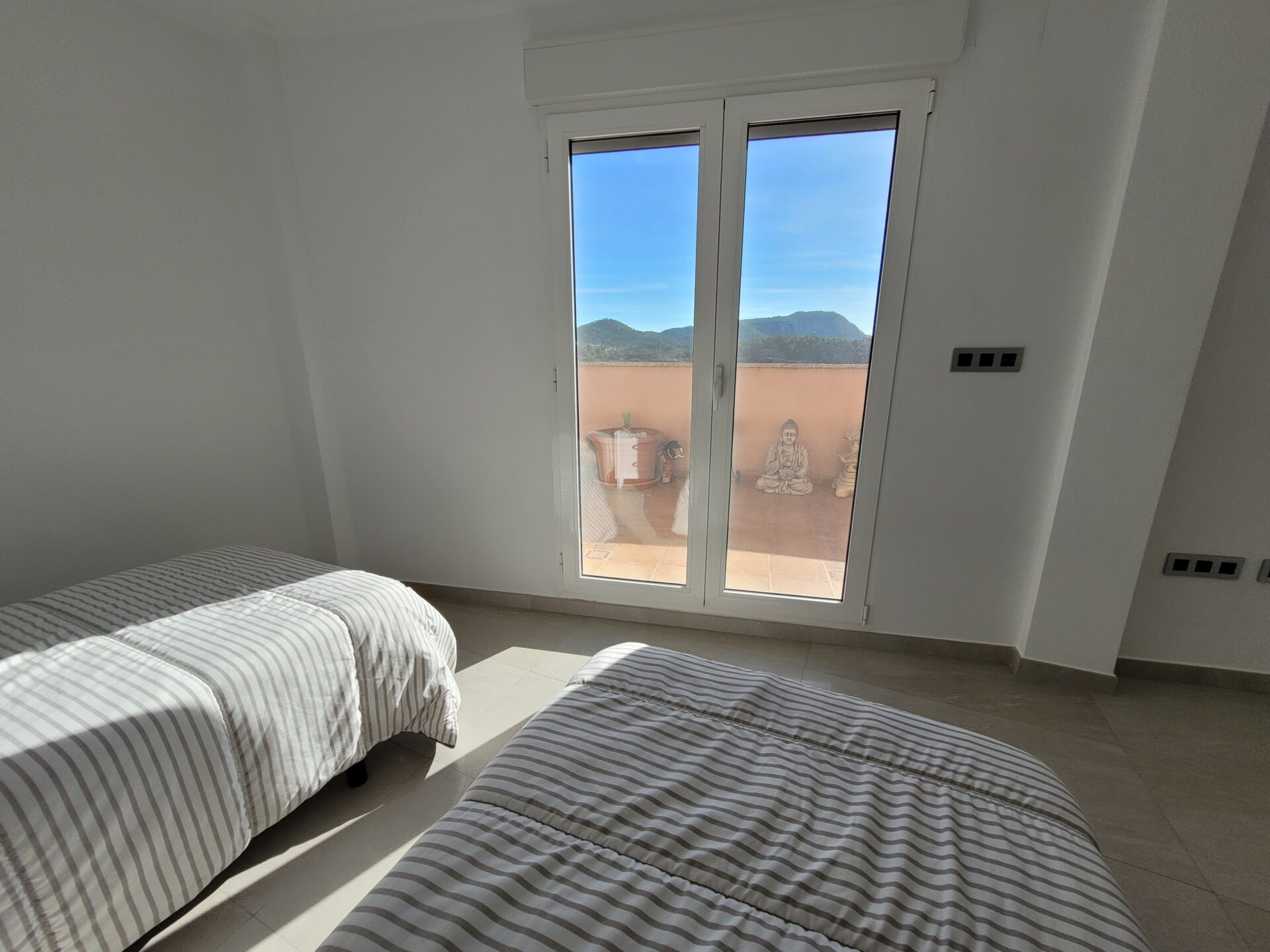 This stylish accommodation is perfect for family or solo trips. A luxurious penthouse with stunning views, located in the Tibi Valley,20 km from Alicante. It features three master bedrooms, two bathrooms, a spacious living/dining room/kitchen surrounded by terraces from all rooms, and a rear terrace with an outdoor dining area. The perfect place for a few days of relaxation surrounded by nature, just 20 minutes from Alicante city center and its best beaches. Enjoy the mountains and sea in style.