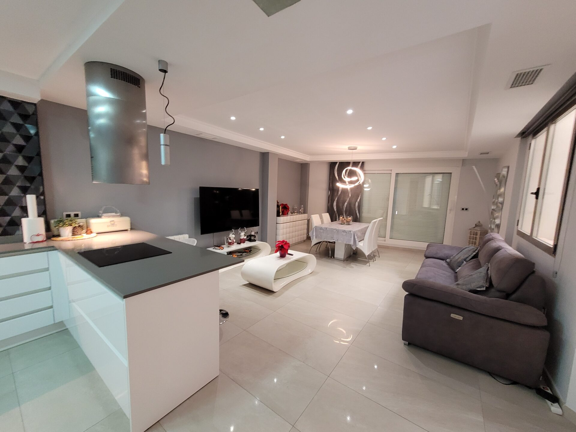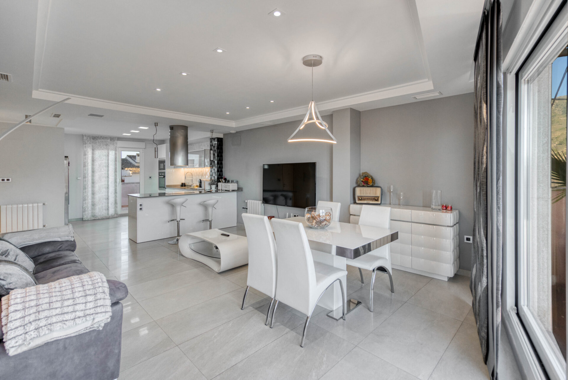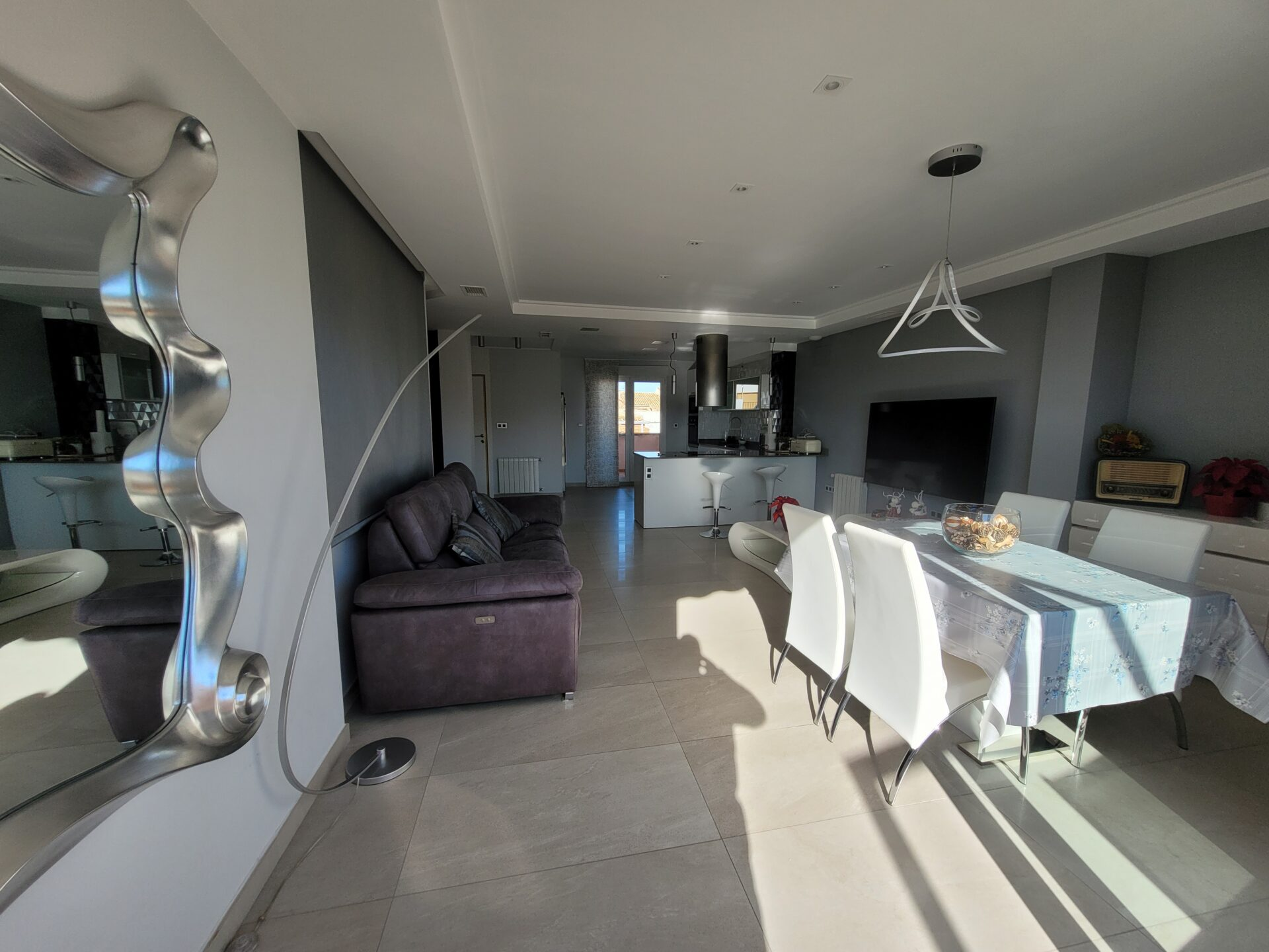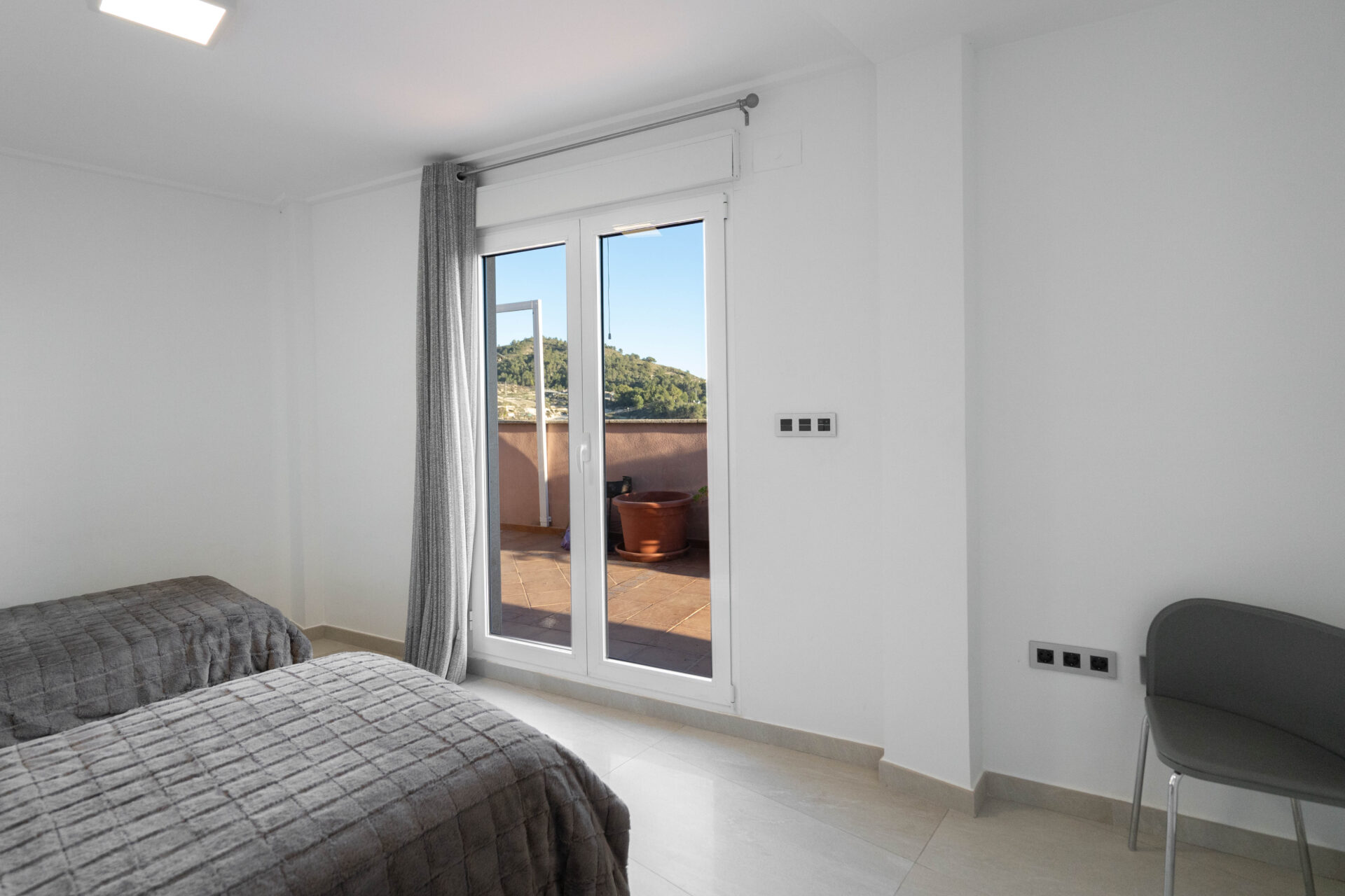 This stylish accommodation is perfect for family or solo trips. A luxurious penthouse with stunning views, located in the Tibi Valley,20 km from Alicante. It features three master bedrooms, two bathrooms, a spacious living/dining room/kitchen surrounded by terraces from all rooms, and a rear terrace with an outdoor dining area. The perfect place for a few days of relaxation surrounded by nature, just 20 minutes from Alicante city center and its best beaches. Enjoy the mountains and sea in style.