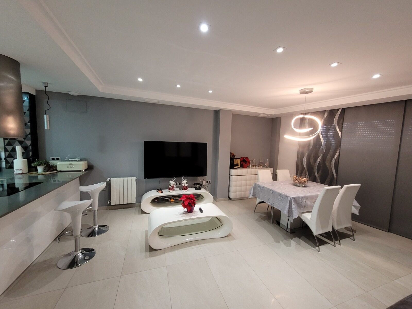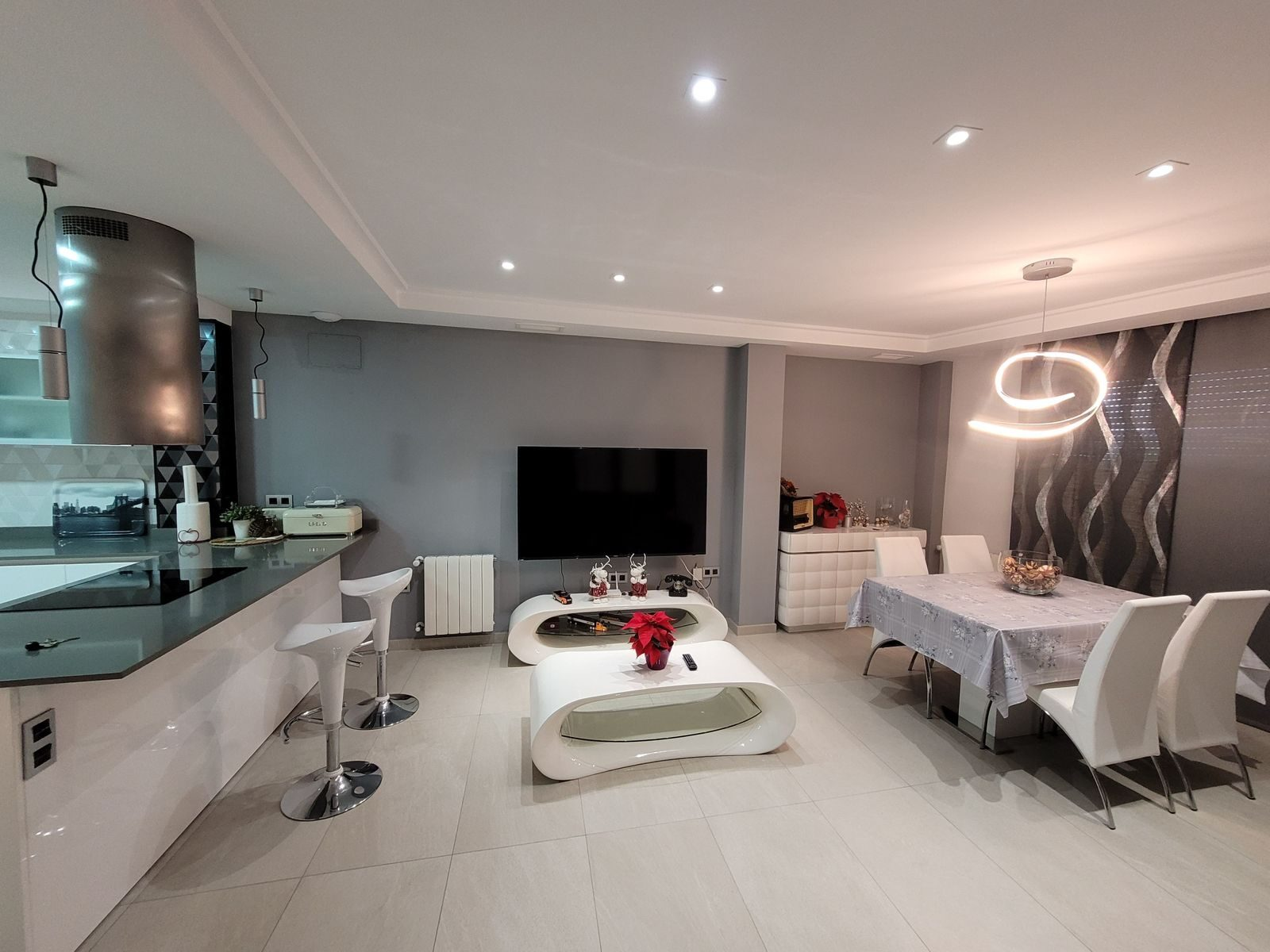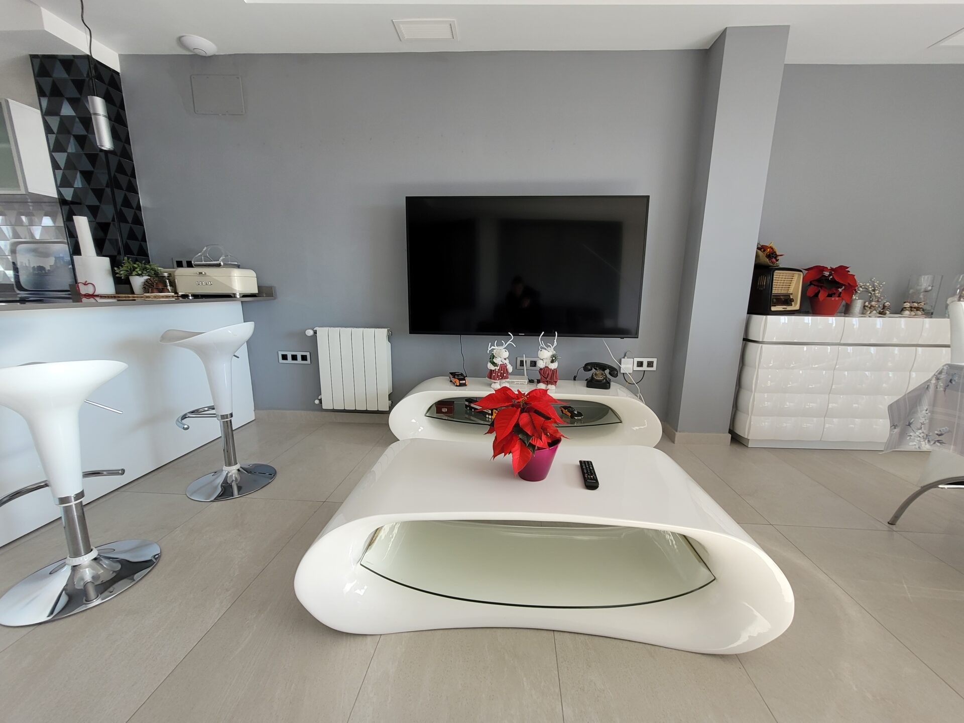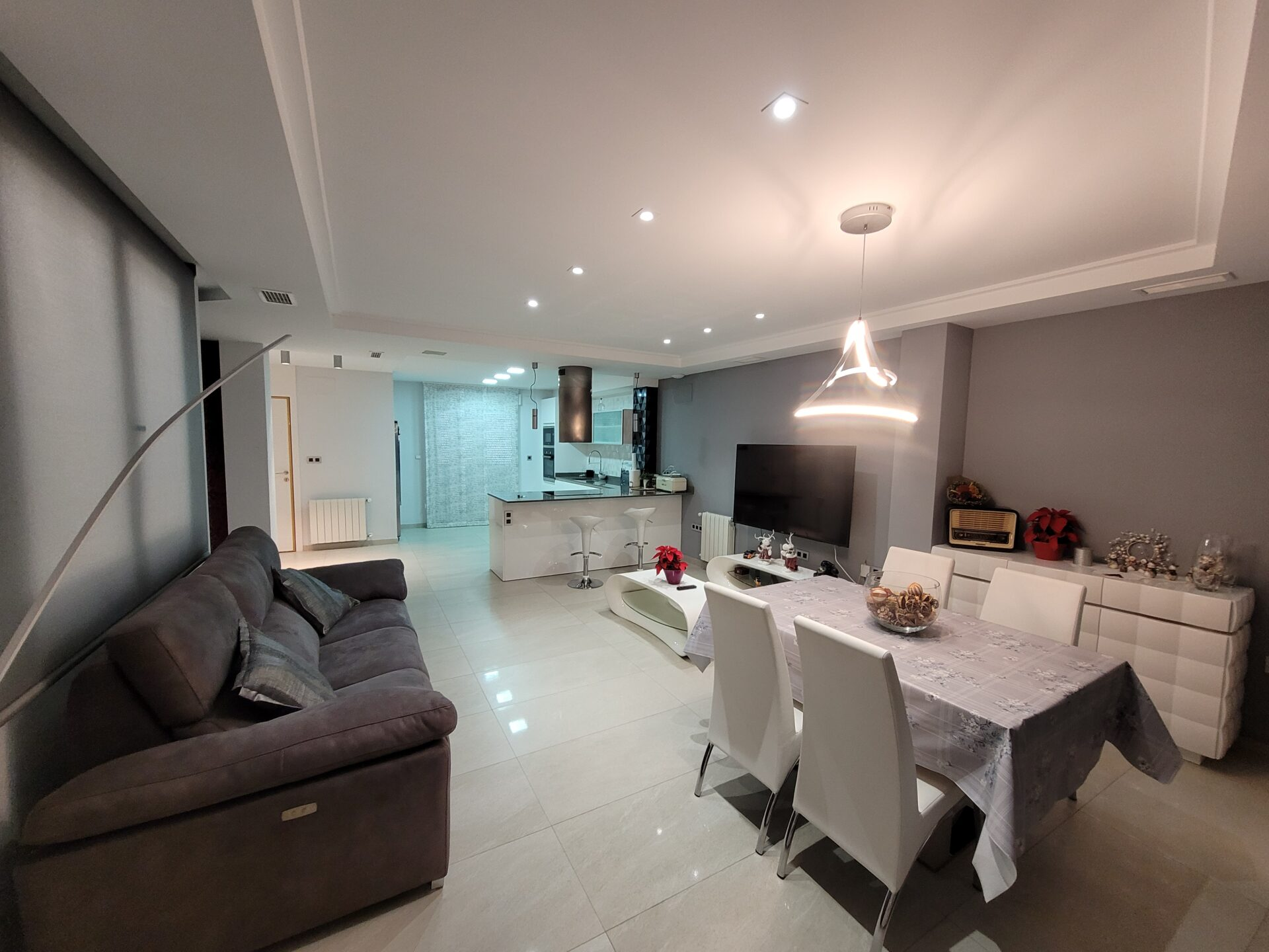 This stylish accommodation is perfect for family or solo trips. A luxurious penthouse with stunning views, located in the Tibi Valley,20 km from Alicante. It features three master bedrooms, two bathrooms, a spacious living/dining room/kitchen surrounded by terraces from all rooms, and a rear terrace with an outdoor dining area. The perfect place for a few days of relaxation surrounded by nature, just 20 minutes from Alicante city center and its best beaches. Enjoy the mountains and sea in style.