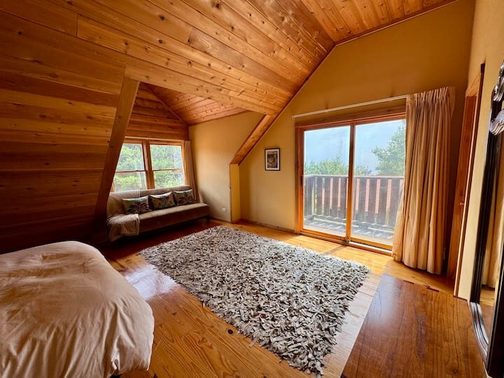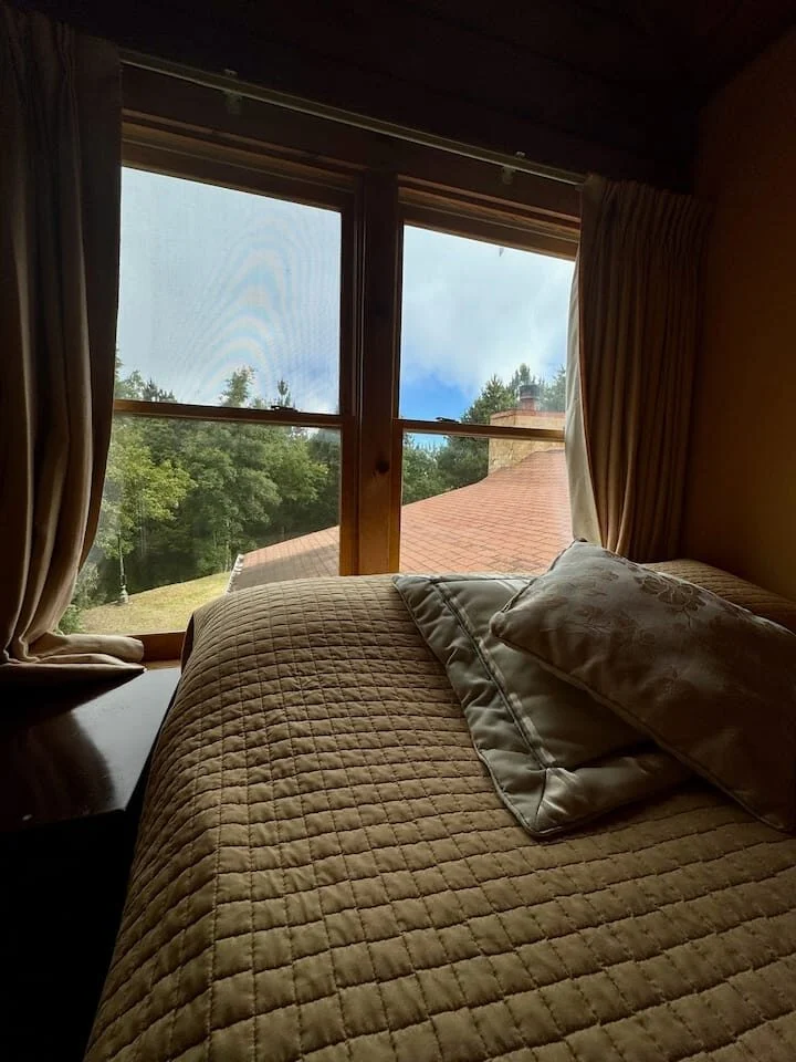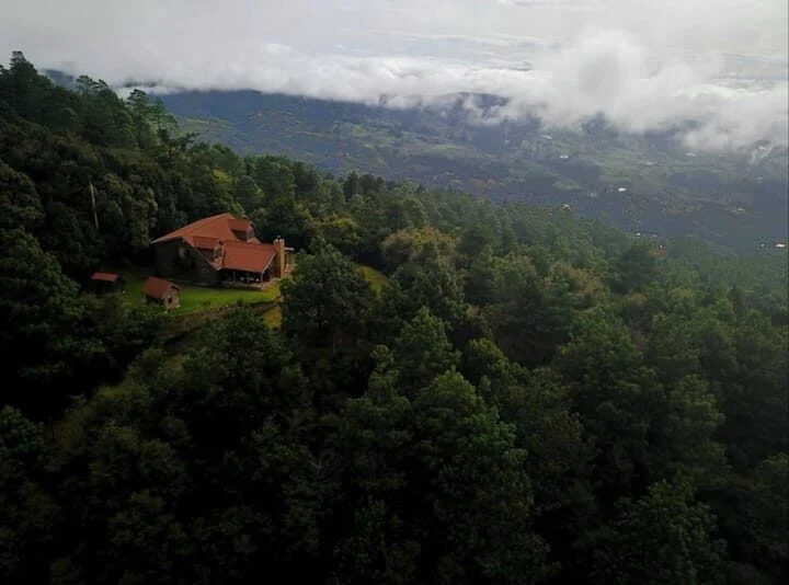 Take it easy at this unique and tranquil getaway. Experience breathtaking views from our mountain cabin, nestled at approximately 2,350 meters above sea level amidst misty forests filled with pine and cypress trees.