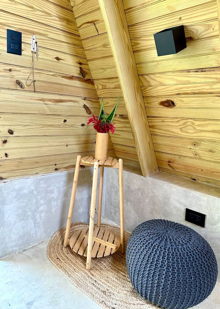 Casa Bambú is a cozy retreat with a large bed for two, private toilet inside the cabin and a spectacular outdoor shower to enjoy nature.