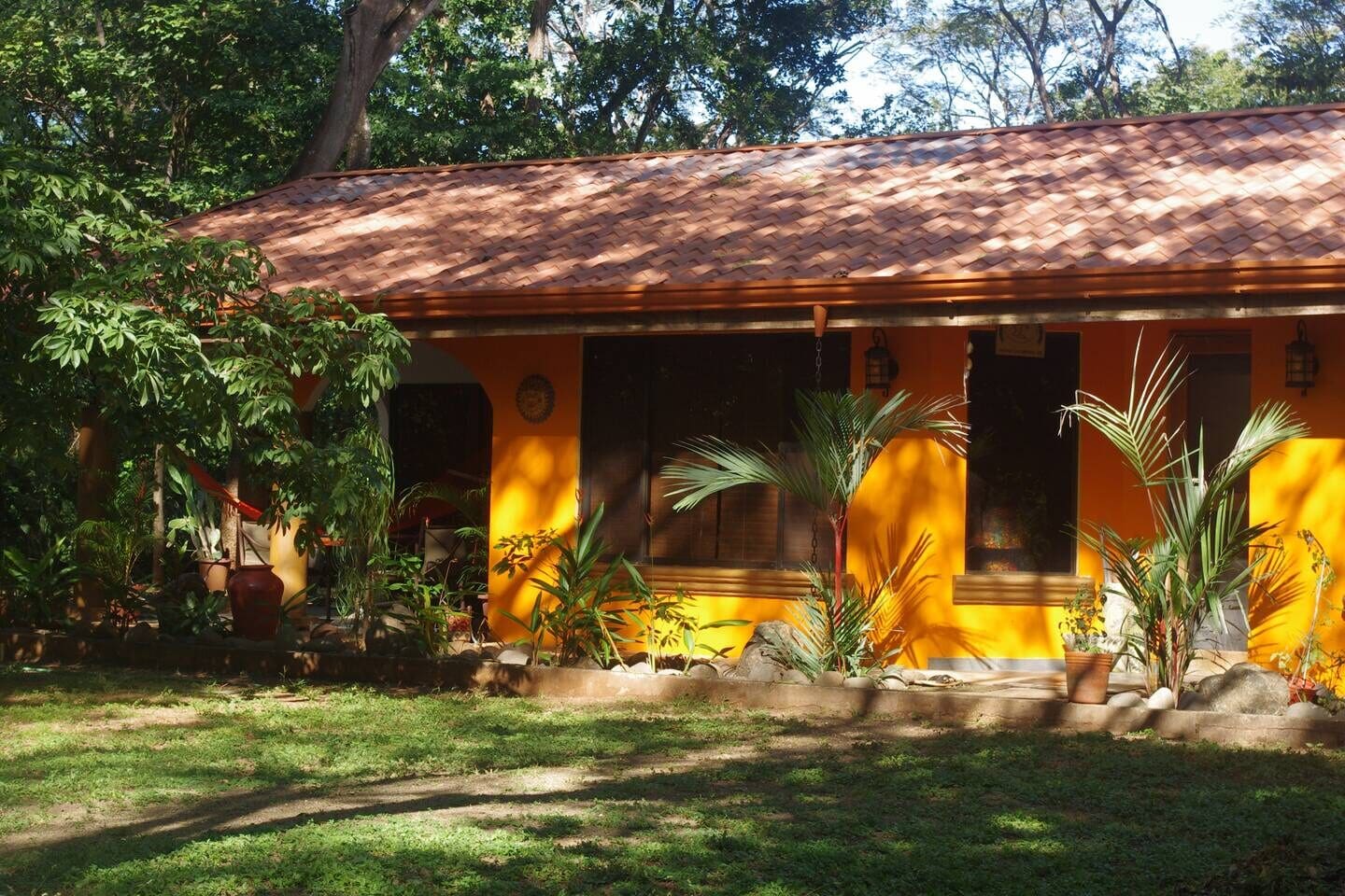 Casa Kalana blends the authentic Costa Rican in/outdoor living experience to create a comfortable and spacious feeling. Proudly described as a "hidden paradise", our strategic location is literally a 3 minute private walk to the Pacific Ocean. Our heavily wooded canopy is home to monkeys, tropical birds and assorted wildlife only asking you to be still. Come and relax to the sounds of the crashing waves and the gentle tropical breeze. Awaken to the howler monkeys and song birds! Recharge your tired soul. Aloha!!