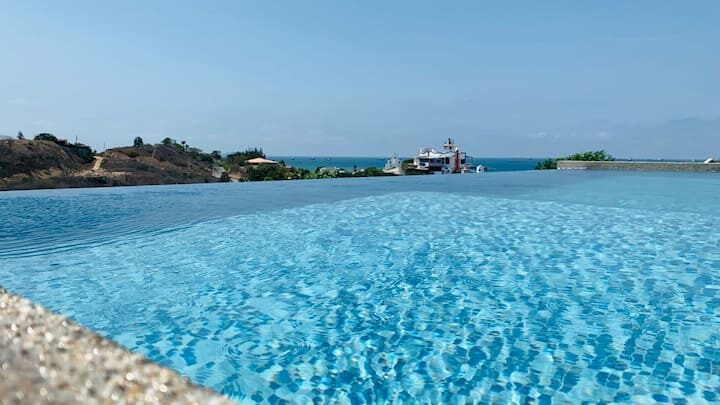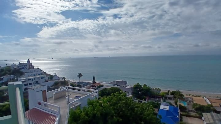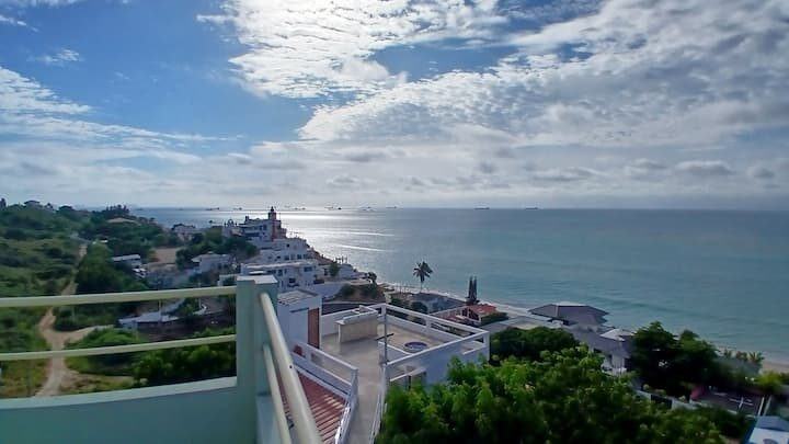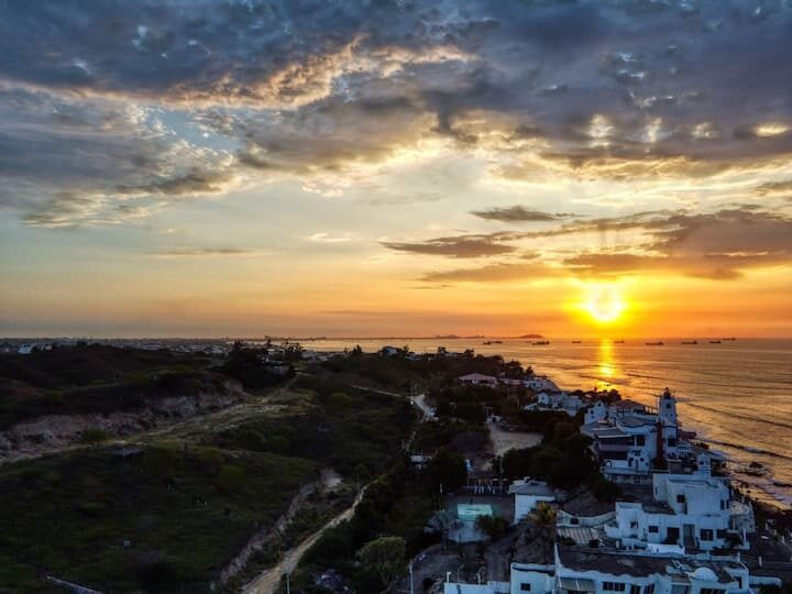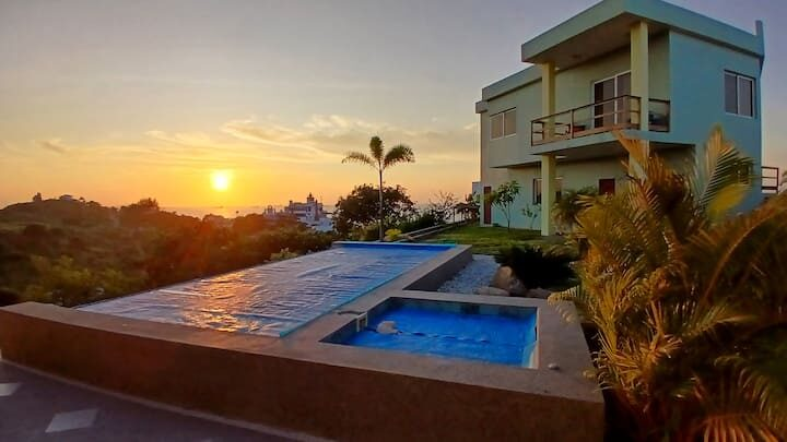 Welcome to Casa Verde, a luxurious hilltop retreat in Ballenita, Ecuador. Enjoy breathtaking sea views, a semi-private beach, and top-notch amenities including an infinity pool.
