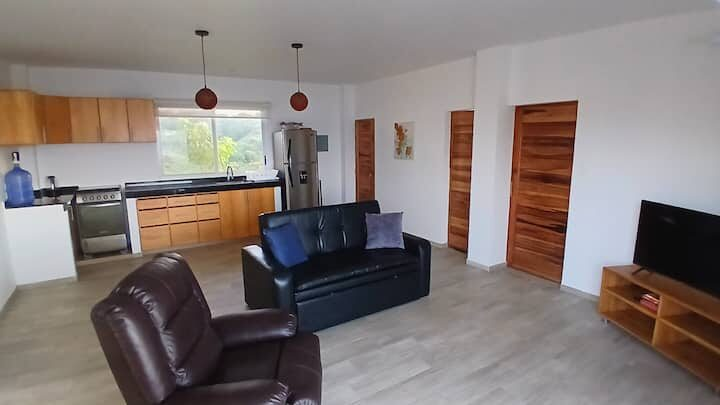 This is a house with 2 apartments, and this one is the one below. The pool is shared between the upper and lower apartment.