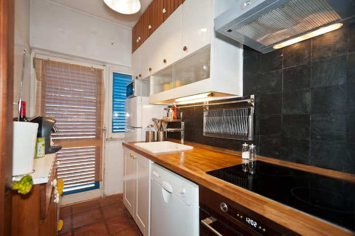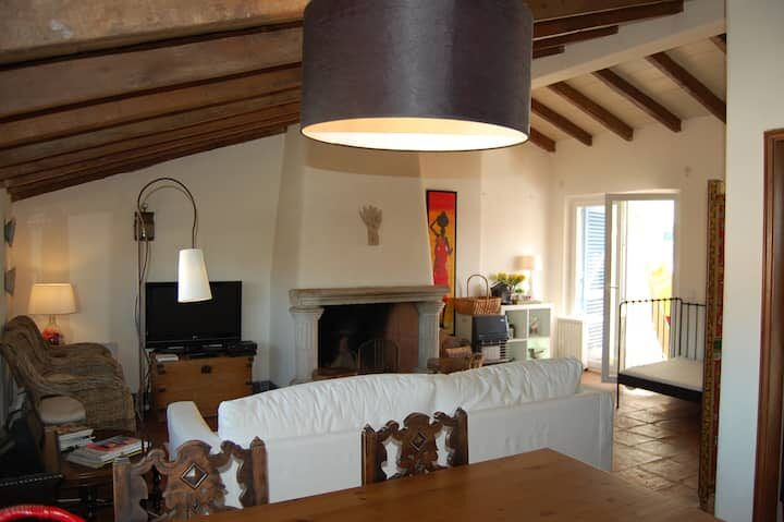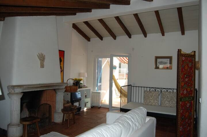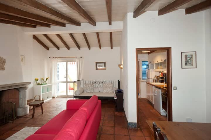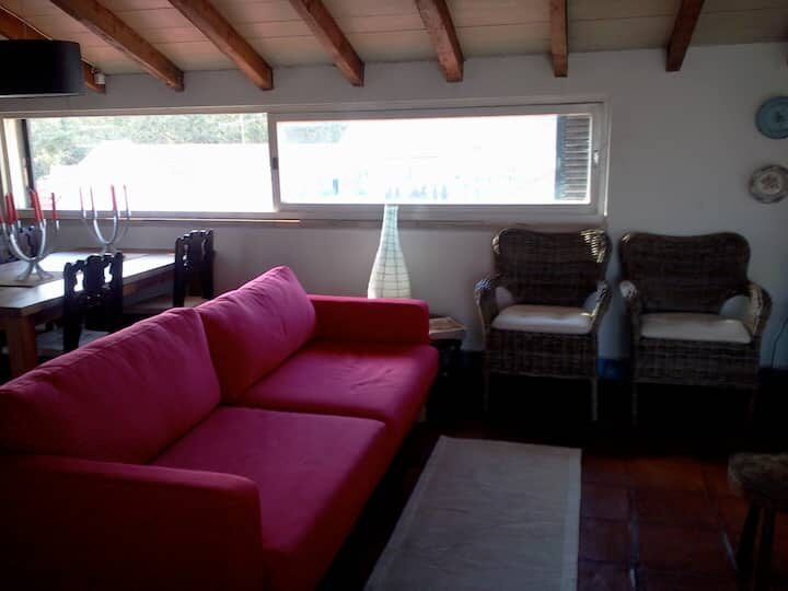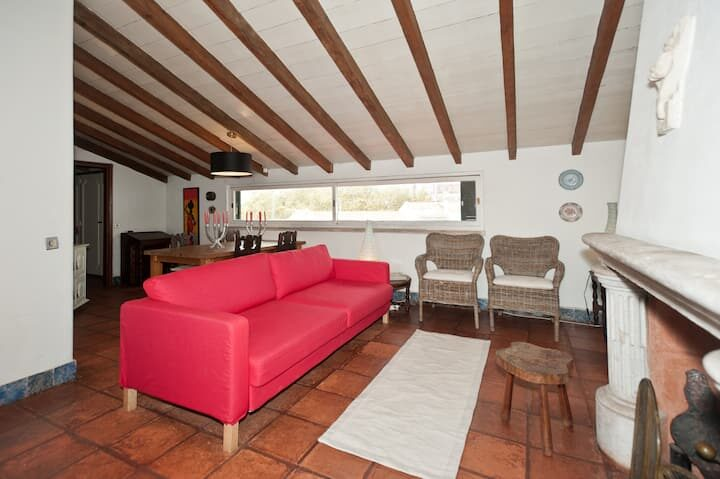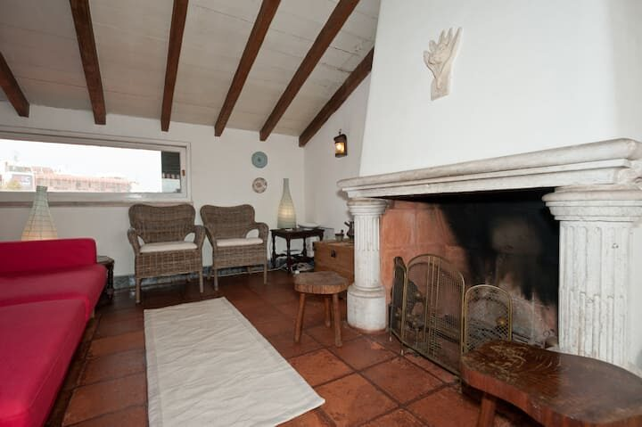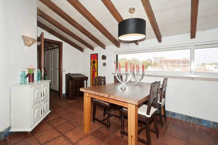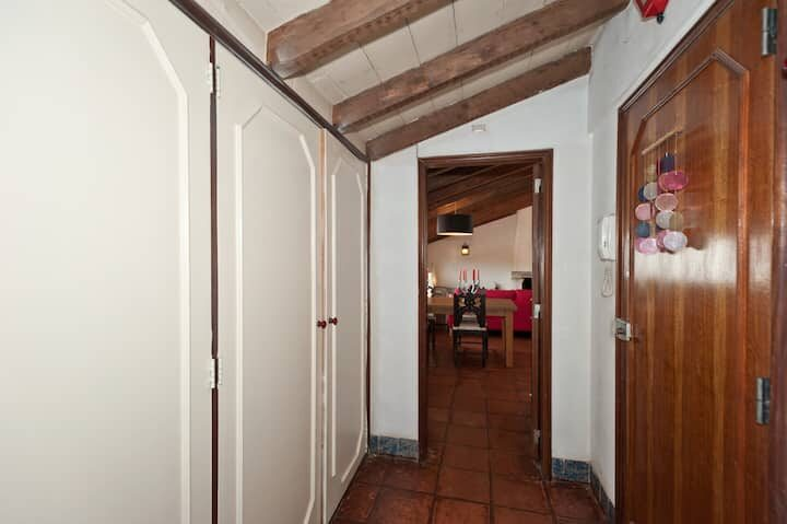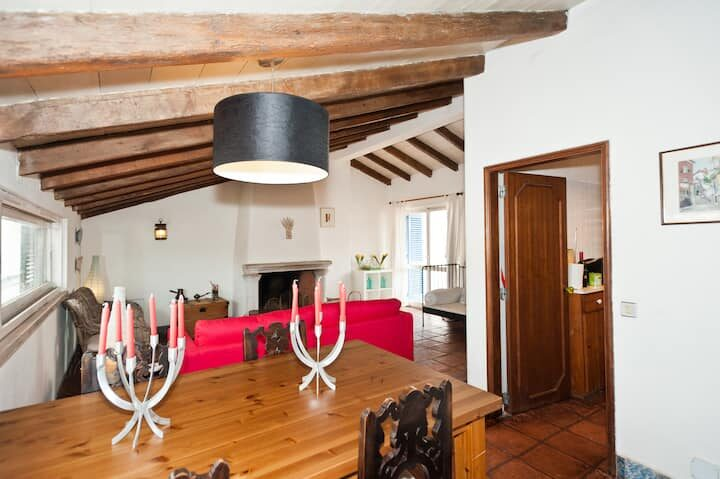 The atmosphere of the apartment is as a country house. A fireplace in the living room, the wooden ceiling and with doors in the living room, bedroom and kitchen, that connect the entire house to its great terrace, it has the ideal atmosphere for vacations.