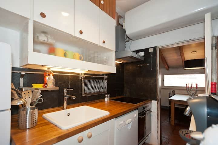 With accommodation for 5 pax, (1 bedroom + 1 sofa-bed for two + 1 extra bed) 1 WC and a equipped kitchen, this is ideal for a small group of friends and families.