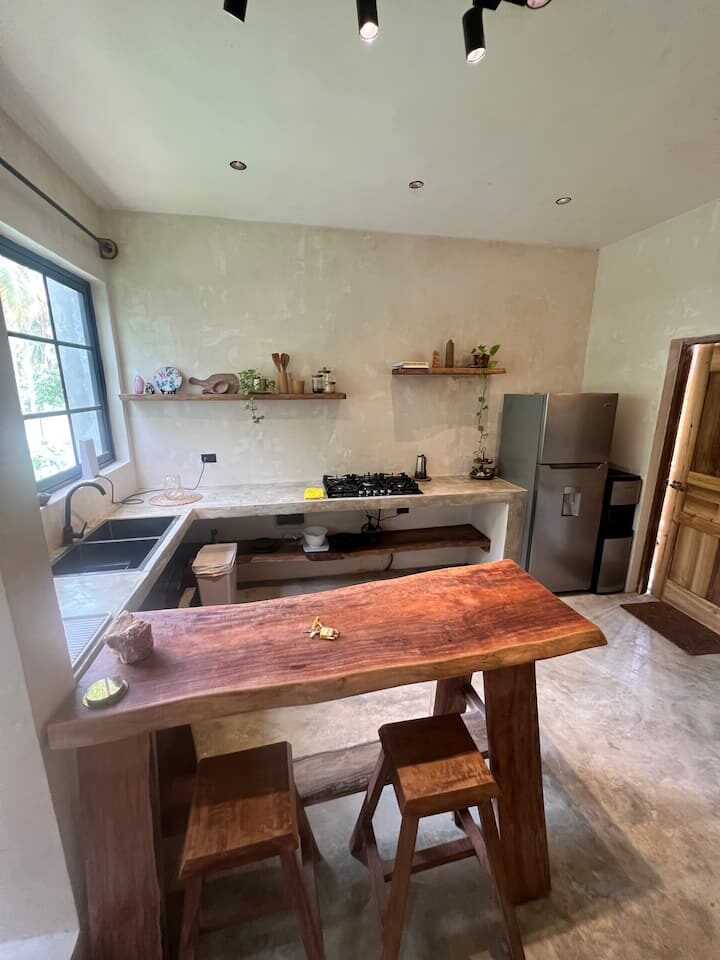 Recharge your energy and good vibrations in this apartment, nested in the jungle of Samana. 7-10 minutes away from the beach with natural and rustic wood decorations, crystals, plants and kitchen that will make you feel at home. Confortable bed, open space for meditation, sexy bathroom and AC are the perfect combo for your next relaxation spot.