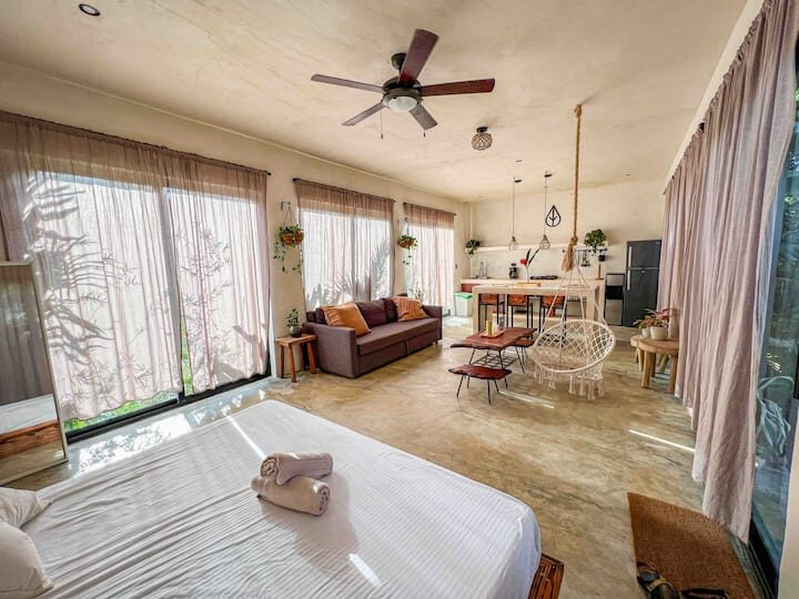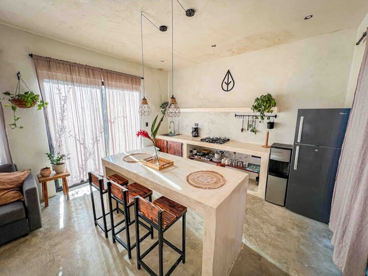 Enjoy the lush tropical paradise of El Valle in comfort with your own kitchen, wifi, and ac. These are the most equipped rooms in El Valle just a 5 minute walk from the beach nestled under a canopy of coconut trees.