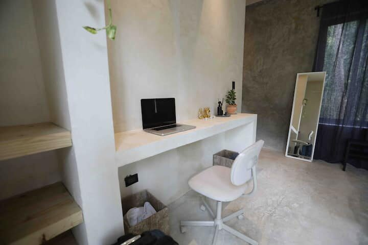 Enjoy the lush tropical paradise of El Valle in comfort with your own kitchen, wifi, and ac. These are the most equipped rooms in El Valle just a 5 minute walk from the beach nestled under a canopy of coconut trees.