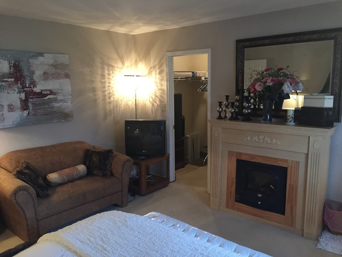 Lovely residential home in Niagara on the Lake We feature a large Queen Size bed, with luxury sheets and comfortable and private suite with fireplace, bath ensuite, WIFI, SmartTV, outdoor patio area and free parking.