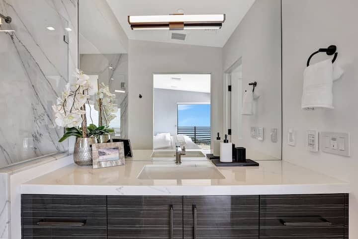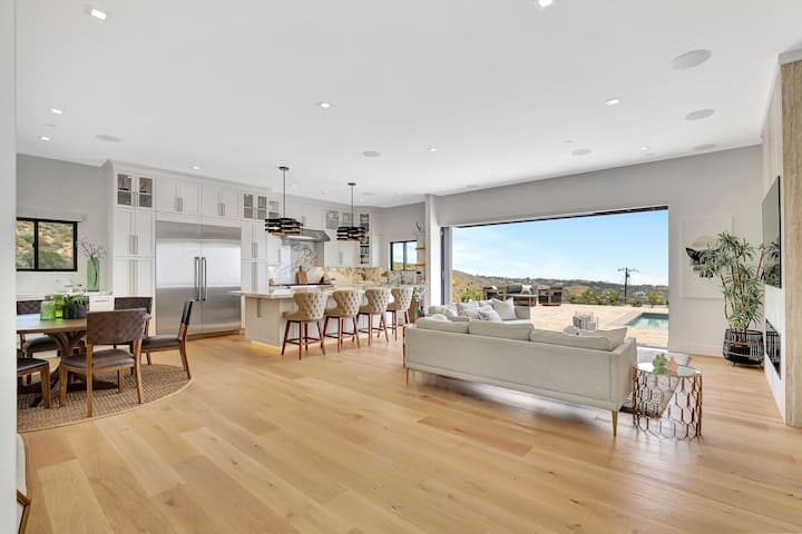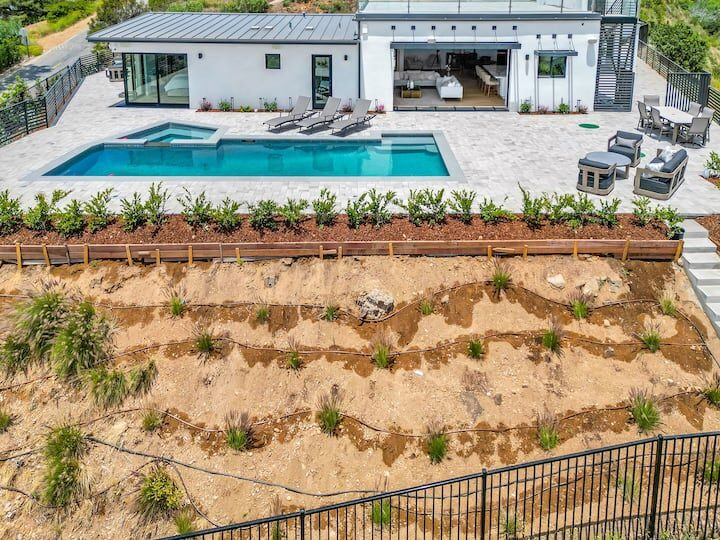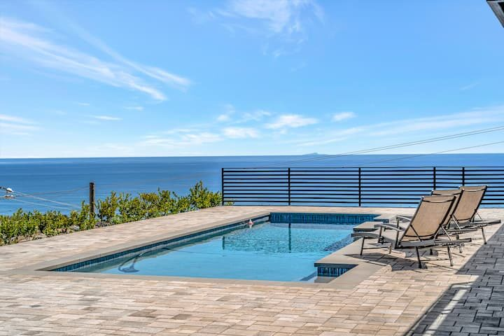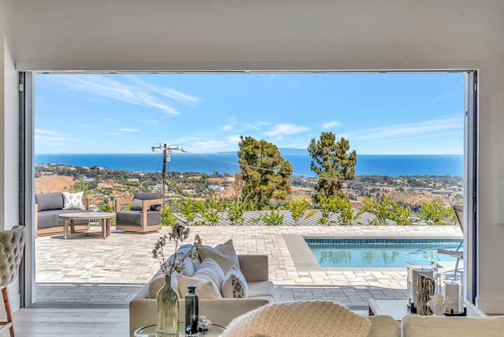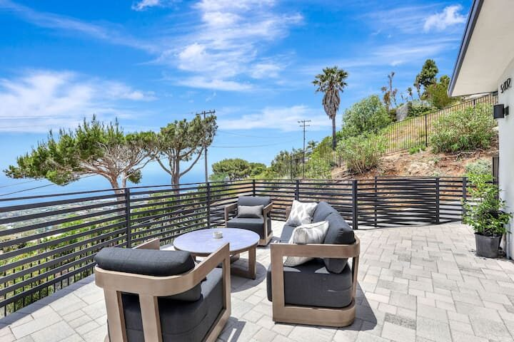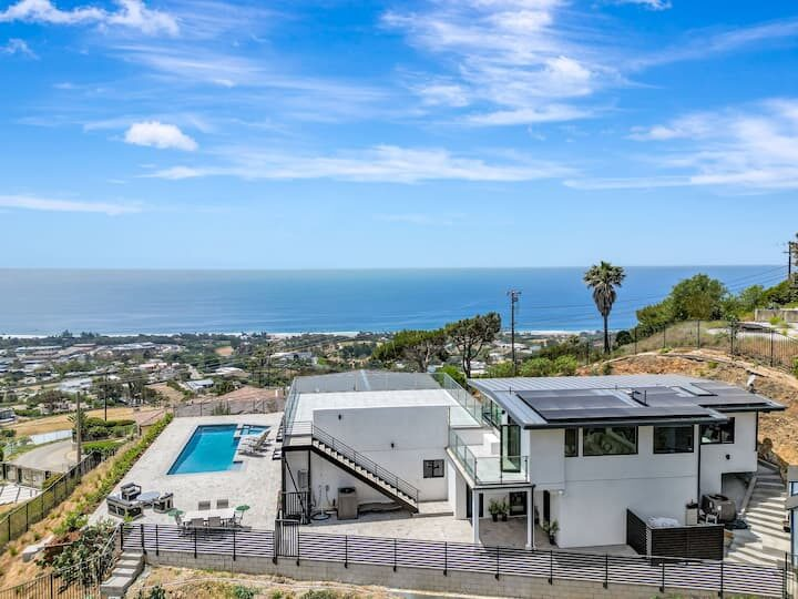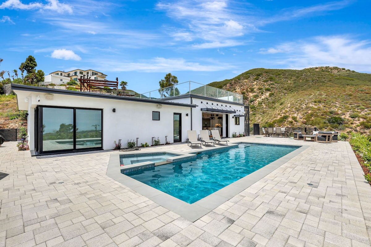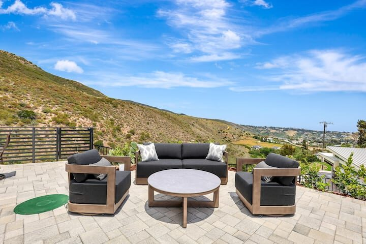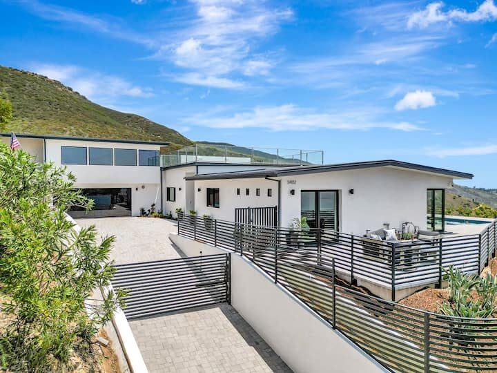 Welcome to one of the newest custom Woolsey Fire rebuilds! Tucked away in Horizon Hills, this custom fire rebuild is your ocean view hillside gated retreat for short term work retreats or long term stays. Have it all! From a turntable driveway, fully equipped stereo/camera/surveillance as well as a hotel-style pool & jacuzzi! This modern hideaway sits on over an acre of mountains, canyons & gorgeous blue water views. For a larger group, there is the entire estate which includes a separate unit