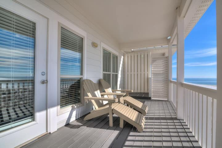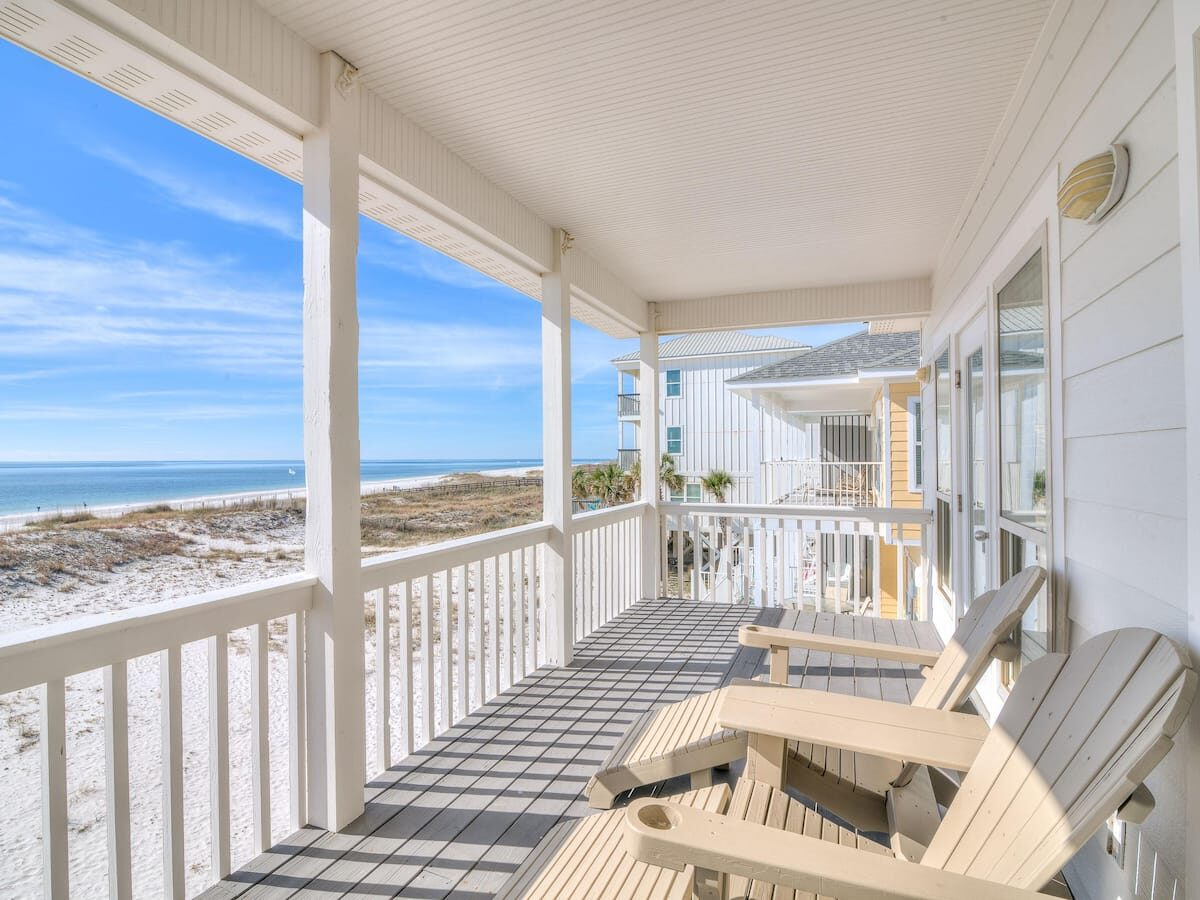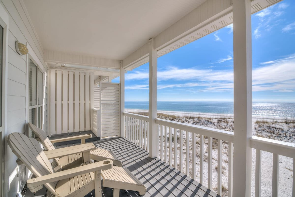 Sunset alone has 2,600 sq. ft. of space, plus three private, covered balconies. One balcony at the back of the house overlooks the pool, and two at the front face an expansive view of the Gulf and beach.