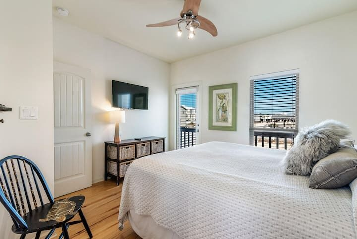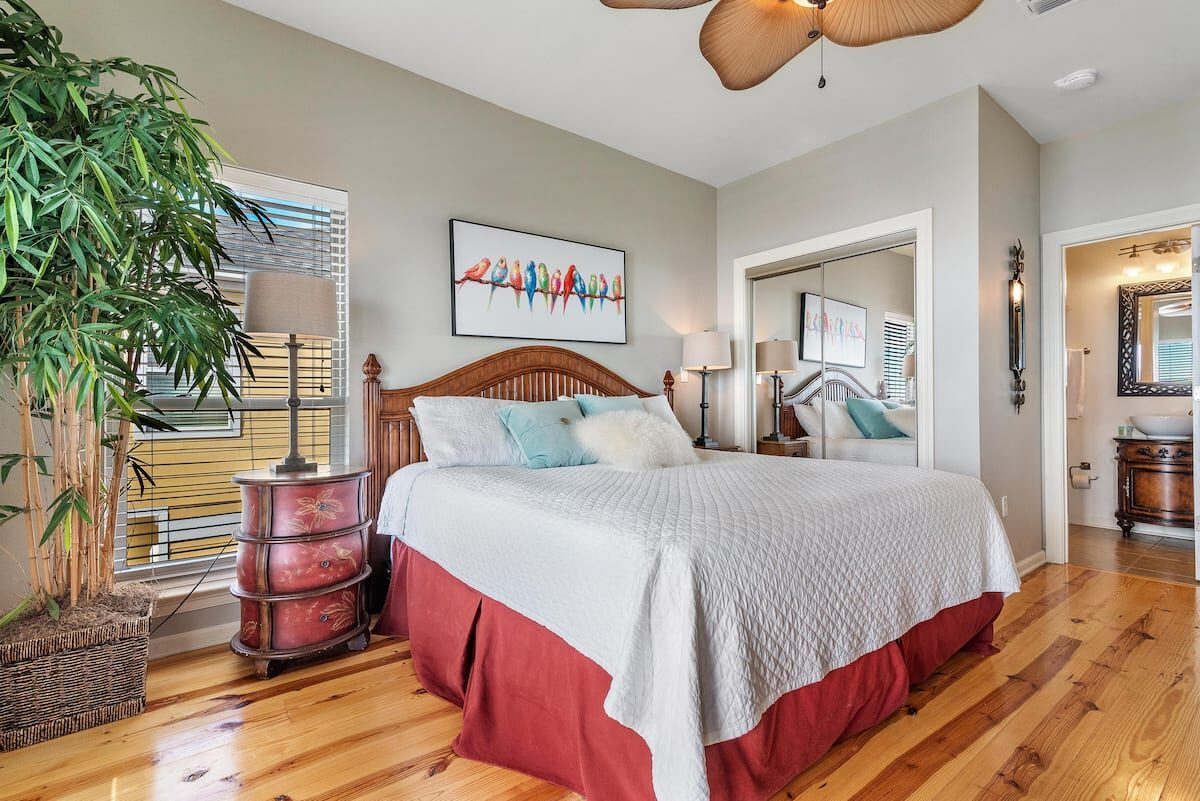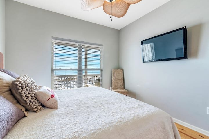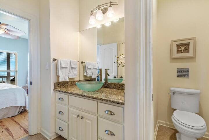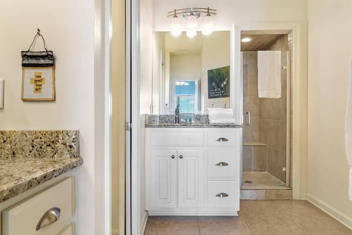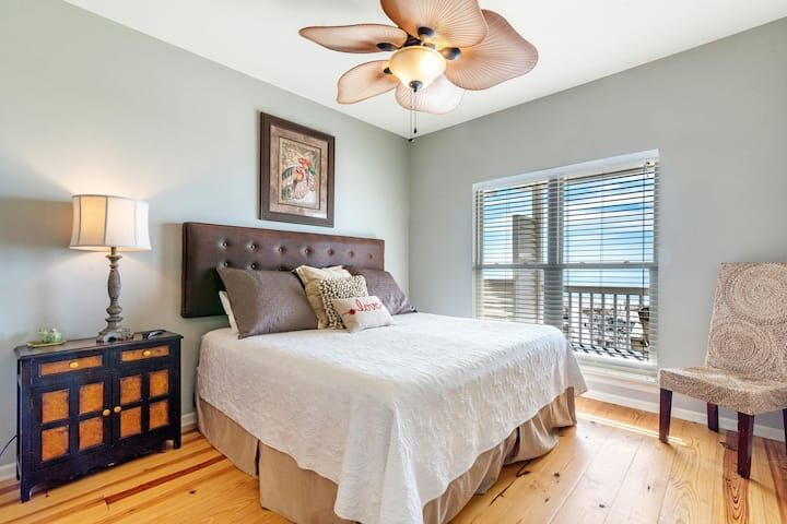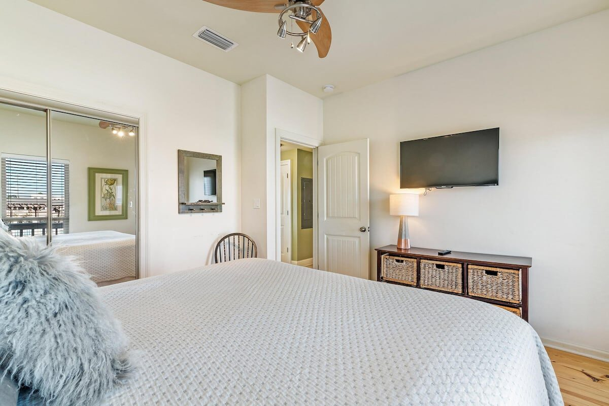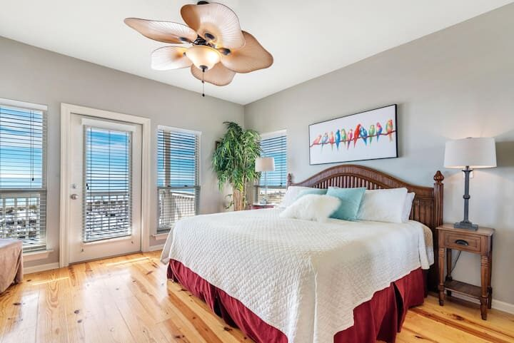 Both king bedrooms (both with Gulf views!) feature their own private bathrooms. One bedroom showcases the Gulf view through big windows, while the other bedroom has its own private beachfront balcony, where you can sip your morning coffee overlooking the water!
