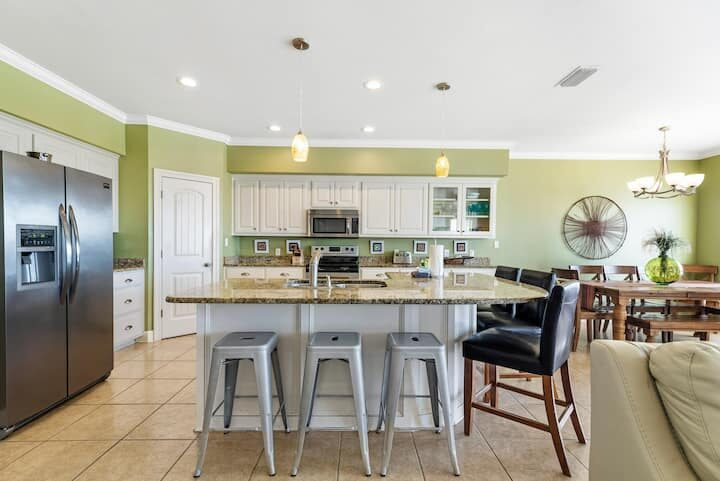 A welcoming, open floor plan makes it easy for your group to spend time together and find quiet moments to yourself. Professional interior design and all-new appliances and furnishings make Heavenly Sunset the perfect setting for your next family vacation, corporate retreat, or romantic couples’ getaway.