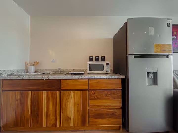 Beachfront vacation, on renowned Playa Hermosa surf with amazing sunsets. Newly built luxury oceanfront apartment featuring 1 bedroom with 1 double bed and a window onto the Pacific Ocean, full bathroom, living room with sofa bed / equipped kitchen.