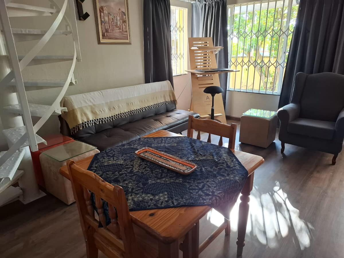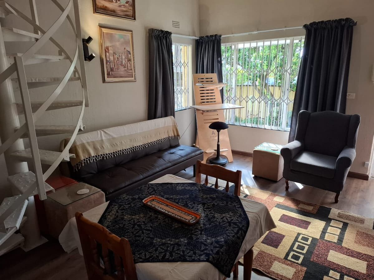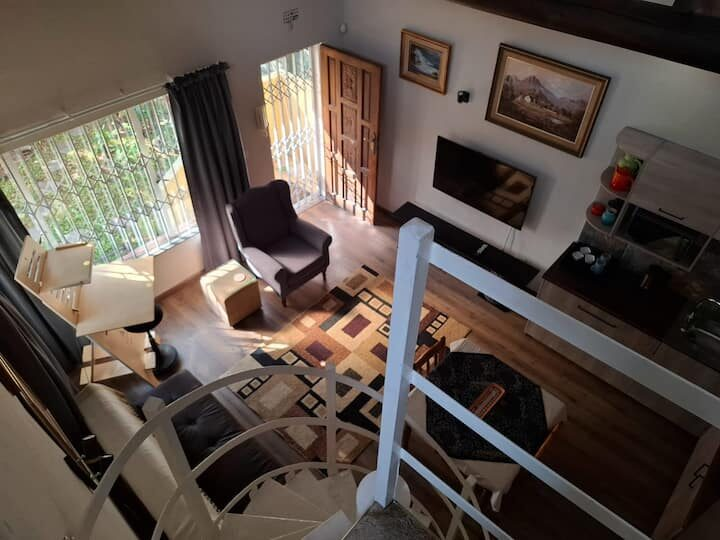Hillcrest Loft is ideally situated for quick access to key business hubs such as Sandton and Rosebank, and suitable for both business and leisure travellers. The spacious open-plan ground floor includes a living area, kitchen, and a dedicated workspace, with the bedroom located upstairs, via a spiral staircase.