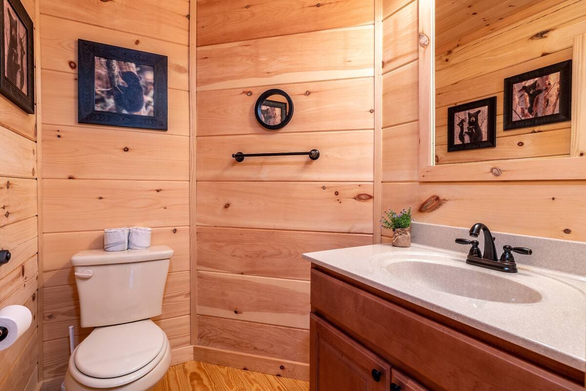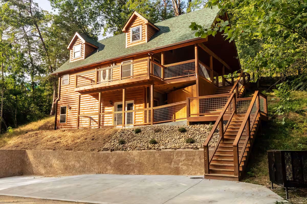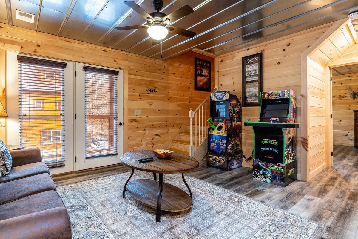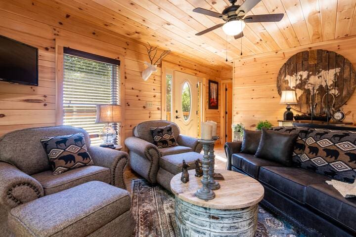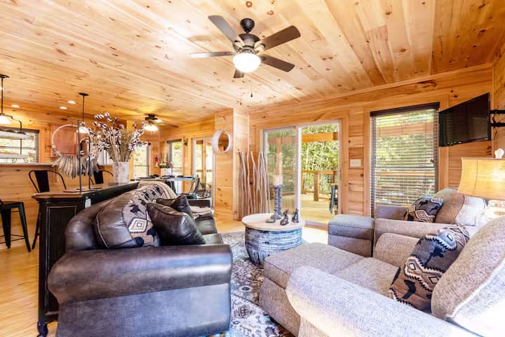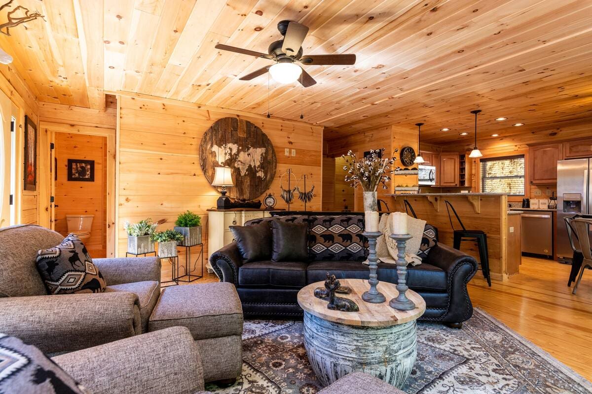 This recently built cabin designed by professional interior designer is just a 2-minute drive to the Parkway, less than 15 mins to restaurants, grocery stores, and multiple Pigeon Forge attractions, and less than 30mins to Gatlinburg attractions; including Great Smoky Mountain National Park.