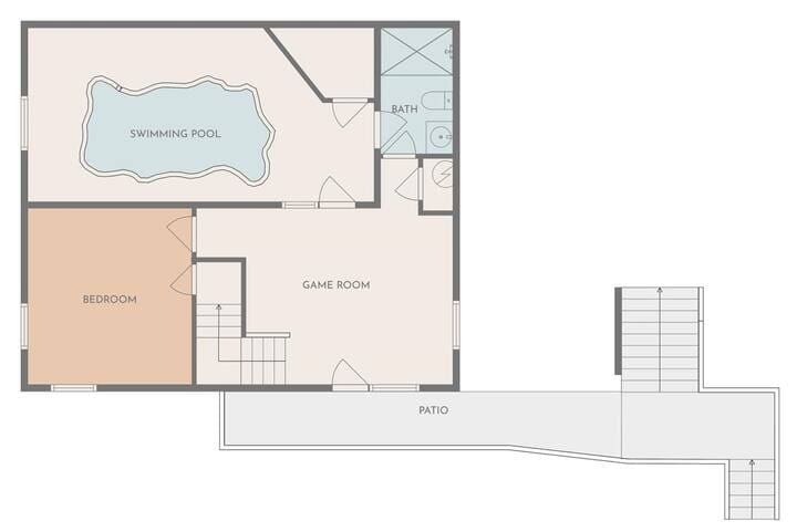 There’s a full bath with a shower located right off the downstairs pool, so you can rinse off after an afternoon dip. A powder room (with just a sink and toilet) is located right next to the front door.