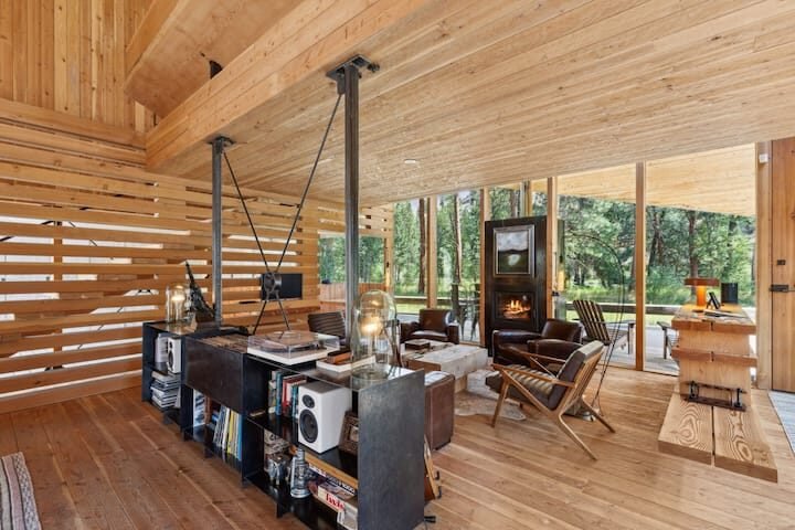 A true “float in, float out” destination, with world-class blue ribbon fly fishing just steps from the back door, this embodies the essence of Montana, as showcased in Dwell Magazine.