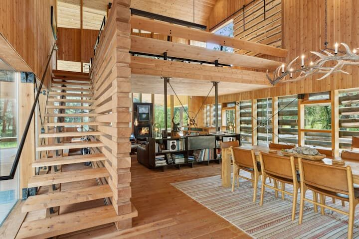 Nestled along the picturesque Bitterroot river, the lodge seamlessly melds two architectural world. Its architectural profile brings to life Montana’s sights and sounds from within. The ultimate escape, perfect for families and groups of friends seeking an unforgettable experience.