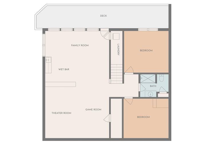 A star of the home is the home theater/game room with a 12-foot theater screen, perfect for movie blockbusters, or just streaming some cartoons for the kids. A pool table, video games, and board games ensure you’ll have plenty of entertainment during your stay. The wet bar and mini-fridge will keep everyone hydrated with their favorite beverages.