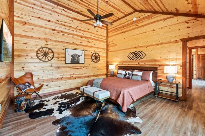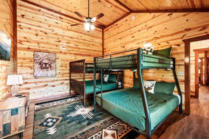Indulge in the spaciousness of this cabin, featuring six tastefully designed bedrooms to ensure maximum comfort, privacy, and relaxation. All bedrooms in this cabin are furnished with king-sized beds, allowing every guest to enjoy the epitome of luxury. Additionally, there is a bunk room that can accommodate the younger members of your group, adding a touch of excitement to their stay.