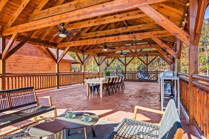 No mountain escape would be complete without ample outdoor space. Not only can you appreciate the view from the floor-to-ceiling windows, you can get out there and enjoy the great outdoors with the massive outdoor pavilion with 12 person dining table.
