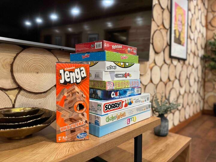 A star of the home is the lower level game room with a 86″ 4K TV perfect for movie blockbusters, or just streaming some cartoons for the kids. A pool table, video games, shuffleboard, foosball, air hockey and board games ensure you’ll have plenty of entertainment during your stay.