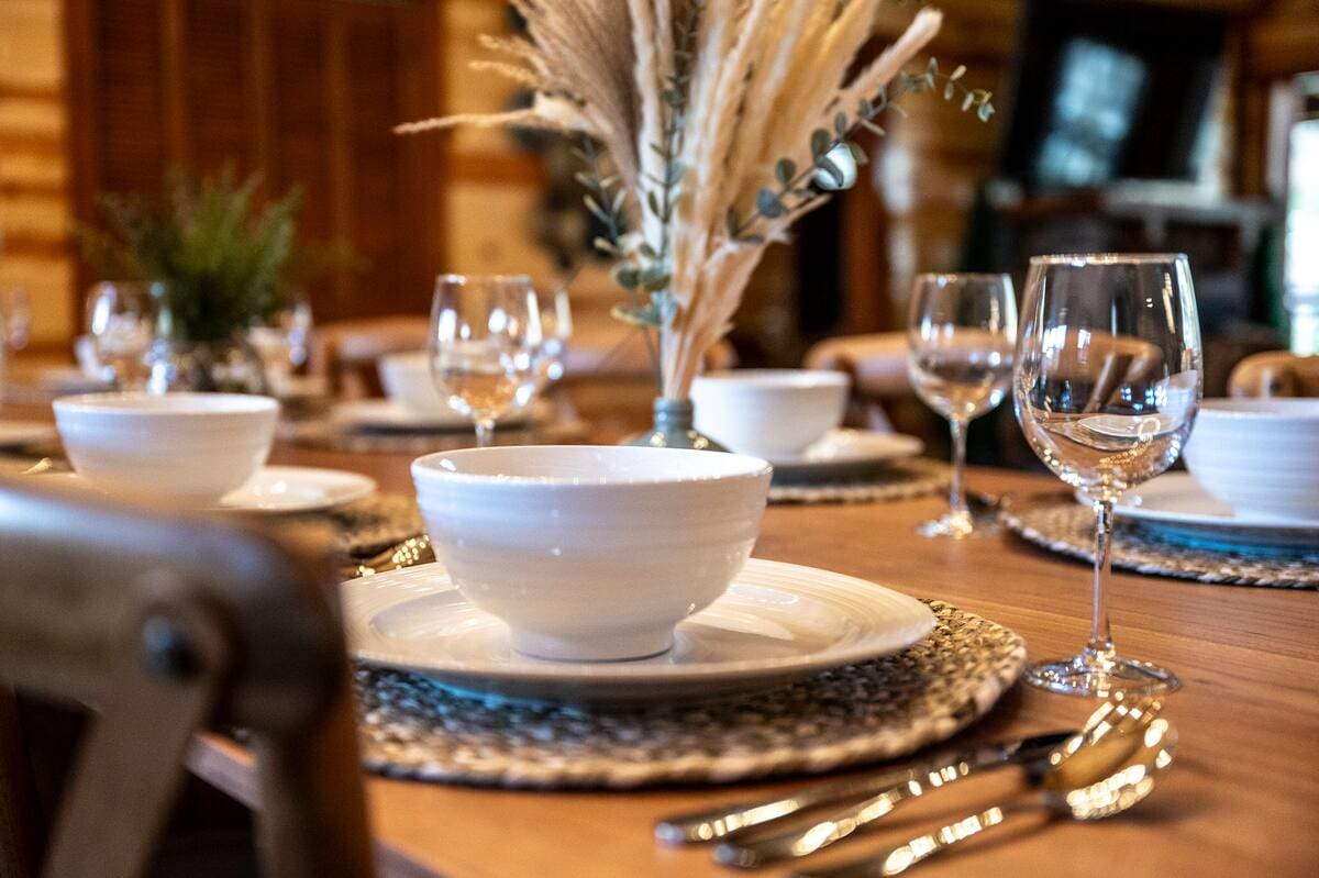 The kitchen island provides overflow seating as well as plenty of workspace for the custom, fully-equipped kitchen with dual refrigerators. You’ll find everything you need to create any of your favorite recipes, even for a large crowd. To help with your cooking all the utensils, cookware and appliances, 2 crockpots, blender, toaster, pots, pans, and BBQ utensils are all provided for your use.