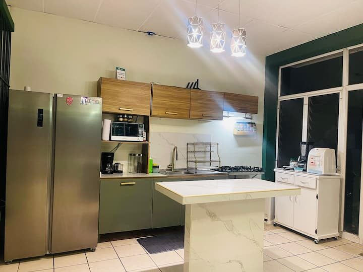 The Jaguar House is a large multi unit home fully equipped with everything you need and more. The kitchen is a premium fully equipped kitchen and the room comes with AC and hot water. Relax in the common areas, the garden or in your room with your own Smart TV.