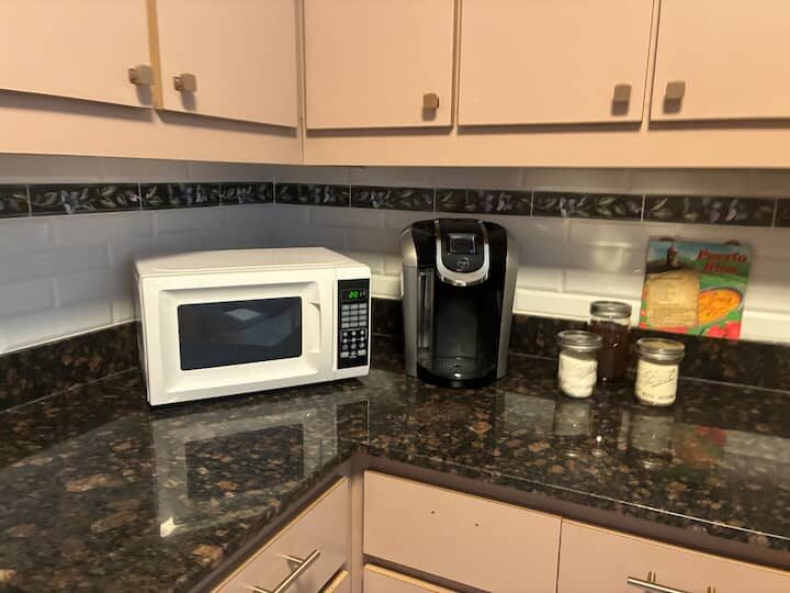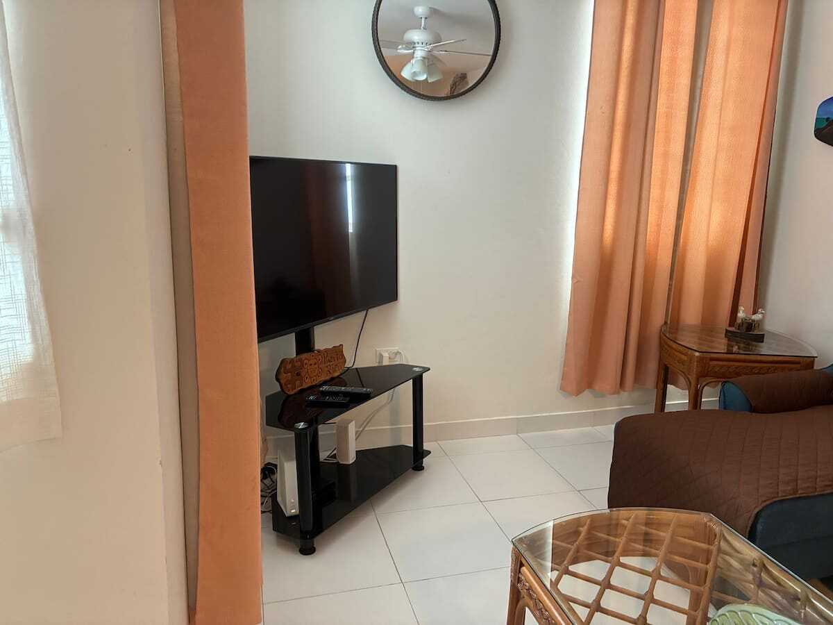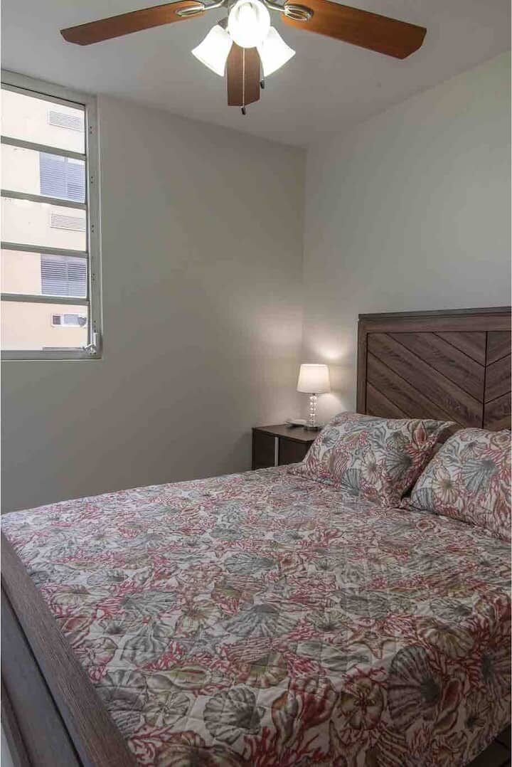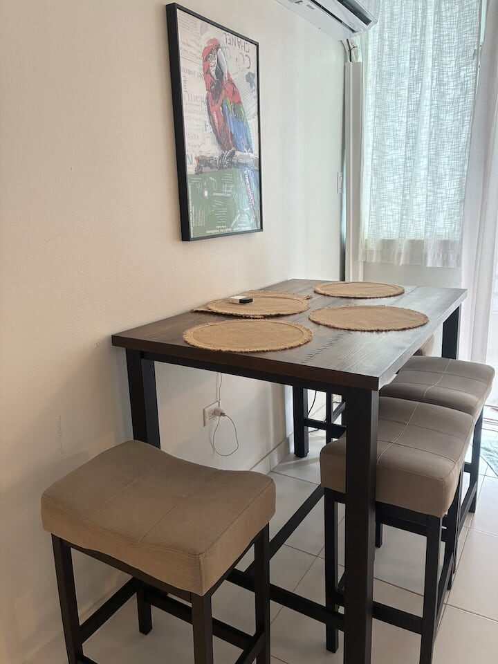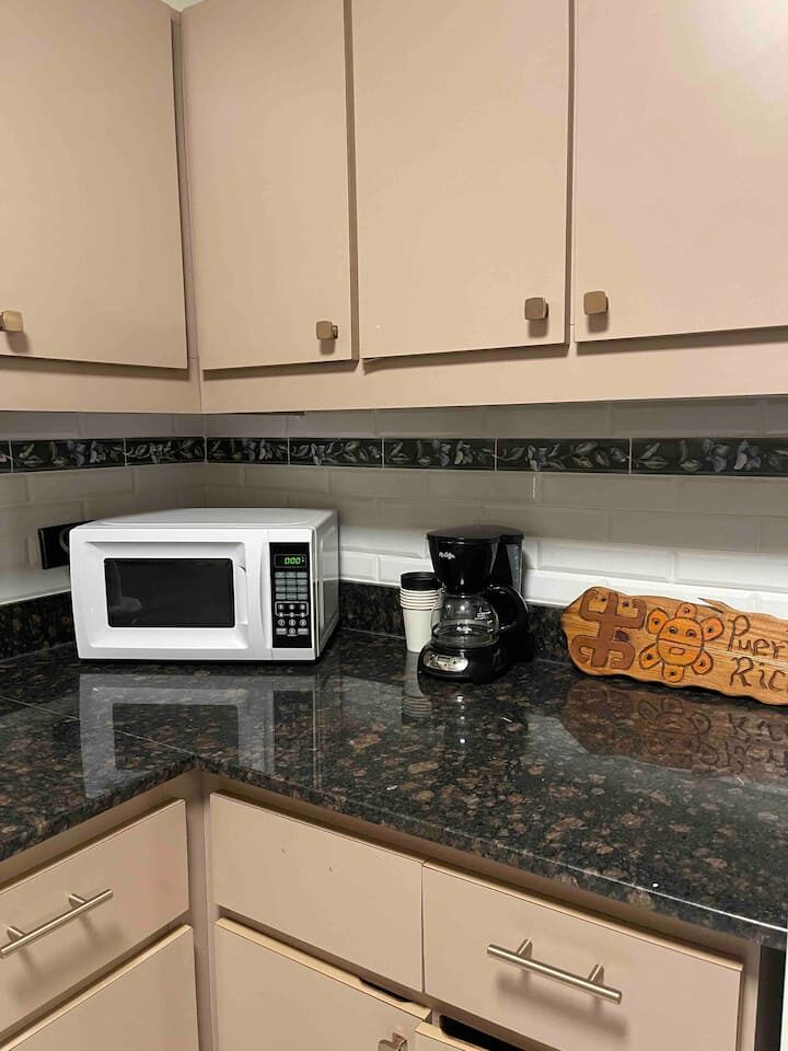 Beachfront scenic condo in Rincon, PR. The condo building sits on the beach. You are a quick elevator ride to the sand and the pool with ocean views from pool deck. Just mins to great surfing. Unit has small ocean view from side of building balcony so you have island & ocean sounds! Calm waters for swimming is always an option out front! Many great restaurants & bars close by and less than a mile to Rincon square. Recently updated interior with new TV’ & high speed internet! A/C in each room.