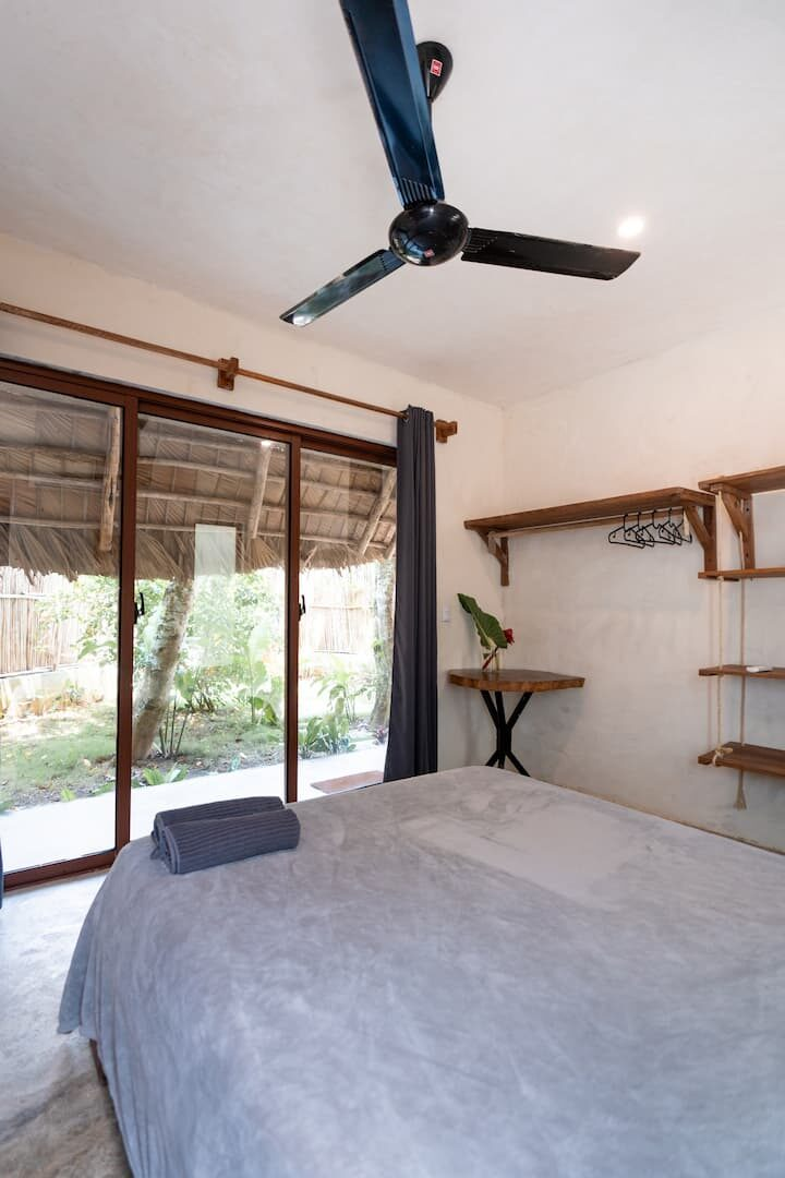 Dawn room is one of our spaces that helps you feel at home at a comfortable price and with good shared spaces. We are located in the jungle of El Valle in Samaná with the beach less than 10 minutes walk away. Perfect for digital nomads, couples and solo travelers and with that extra touch of comfort like AC and Wifi.