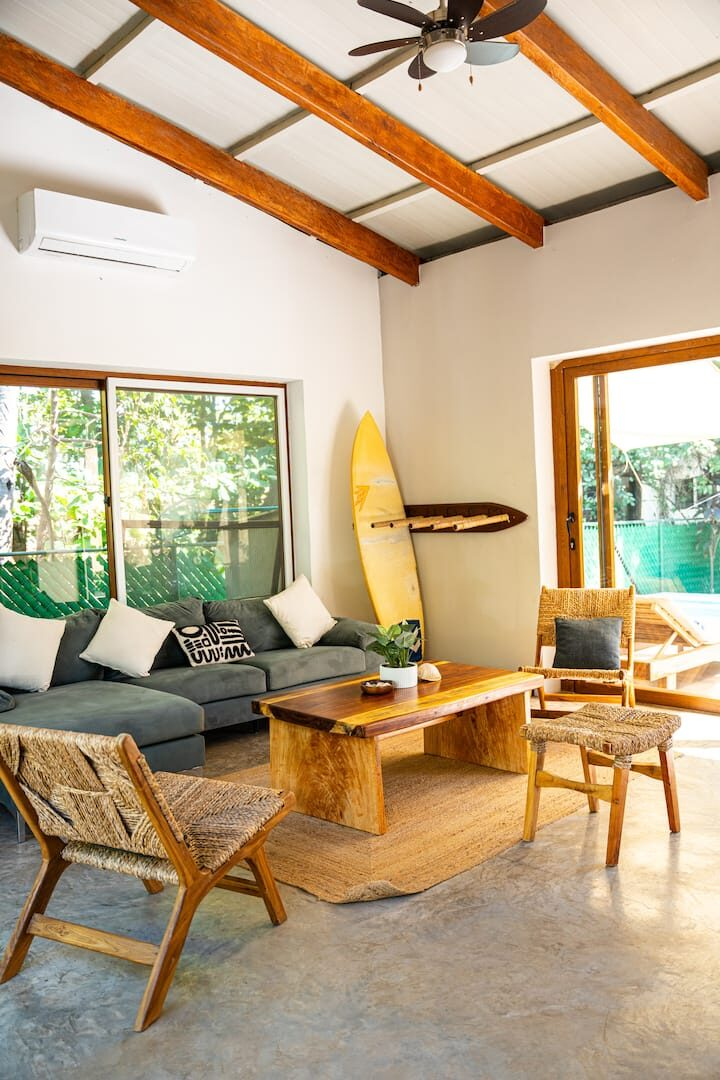 Enjoy the luxury of the attentive service of a full-time concierge, ensuring your every need is met. With its prime location, you’ll have easy access to three breathtaking beaches nearby. Relax in the utmost privacy and security of the Santi Chanti surf house.