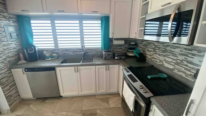 Beautiful renovated Caribbean waterfront home in Joyuda, Cabo Rojo. Close to Mayaguez and Boqueron & a quick, scenic 40 minutes to Rincón- surf capital of the island. 3 bed, 3 bath with/pier and amazing outdoor areas. Walking distance to several restaurants & bars.