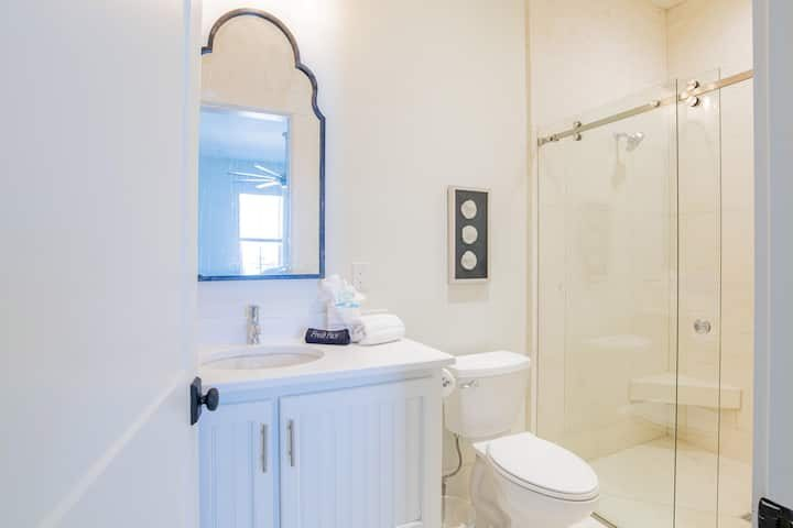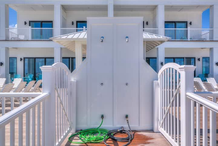 Frolic on the beach with your family, rinse away the sand and salt at your freshwater outdoor shower, then settle in for an al fresco meal at one of your poolside dining tables (or inside in the A/C!). After the sun sets, take a night-time dip under the stars in the company of friends, family, and the moon shimmering on the Gulf.