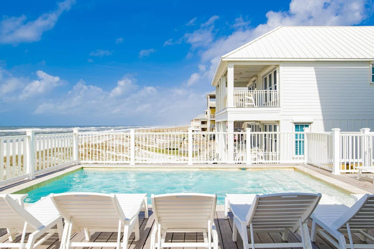 Keywords: “Seaside West” Orange Beach Gulf Front Beach House, Gulf Shores Beach House, beachfront home, private, luxury home, private heated pool, orange beach, gulf shores, direct gulf front. Wedding Friendly with additional fee on approved events, Corporate Retreat