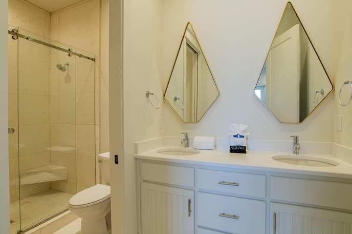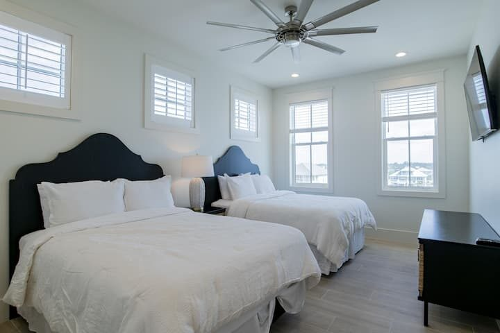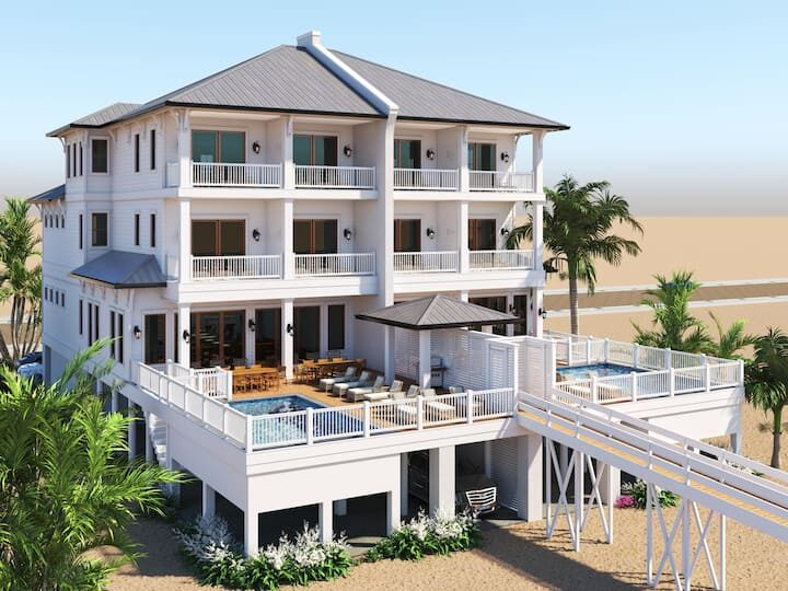 Each side of this property will accommodate 24-40 guests comfortably and is located in the HEART of Gulf Shores AL, close to all local shops and restaurants . Each side features 12 bedrooms, with 11 full baths and one half-bath and a private pool. Both properties together, can accommodate up to 80 guests, making it an ideal option for weddings, corporate events, and other special occasions that require a truly unforgettable setting.