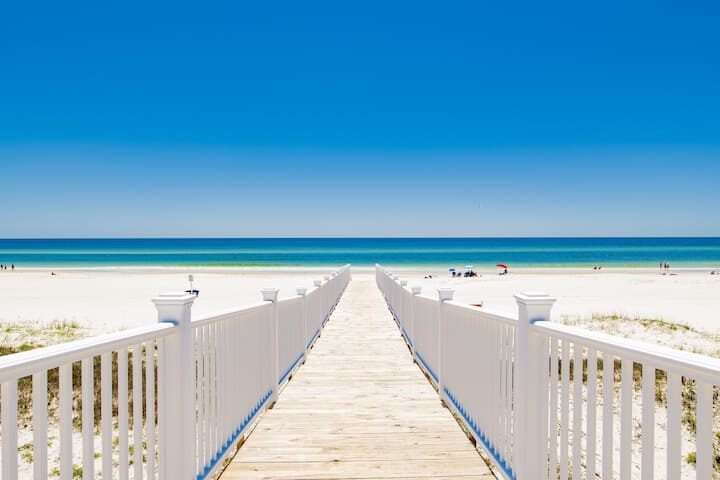This centrally located Gulf Shores escape puts you right in the center of everything. Outdoor activities (other than the beach, of course!) range from low-key pursuits like golf and kayaking, to adrenaline-pumping adventures like ziplining over the dunes, Wildlife-lovers will be in heaven here, with birdwatching at the Bon Secour National Wildlife Refuge, dolphin-watching cruises, and The Alabama Gulf Coast Zoo. Visitors love Gulf State Park for its beaches, trails, and pier. And that’s just the beginning!