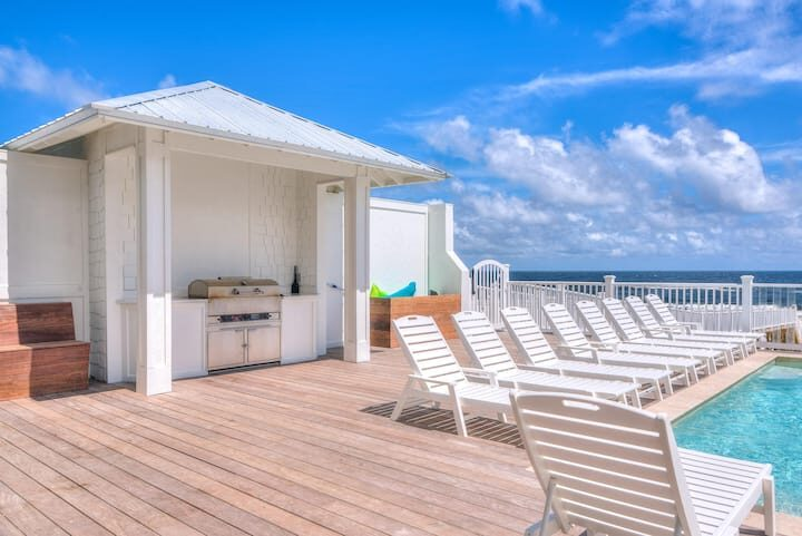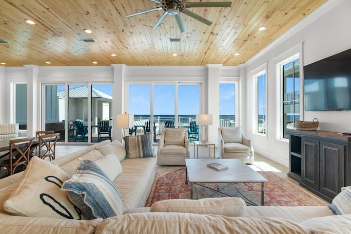 Welcome to Seaside, one of the most remarkable beachfront properties in Gulf Shores, Alabama. This ultra-luxury beach house features every amenity you can imagine, including an elevator, a private beachfront pool, ample covered parking and stunning Gulf views from multiple decks and balconies.