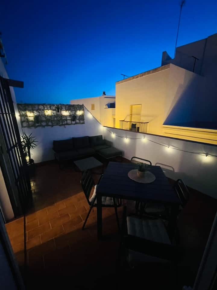 Cozy apartment ideal for couples, but with capacity for 4 people. It has an enjoyable terrace to relax outdoors. Located in the old town of Rota, in a very quiet and bustle-free area, just a 2-minute walk from the beach and a few steps from the Town Hall and the Castle of Luna, the most emblematic areas of the city.