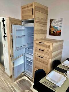 KITCHEN: Fully equipped with cooking utensils, pots, and dishes. Ideal for cooking evenings, complete with a large refrigerator, freezer, oven, 4 cooking plates, and a dishwasher.
