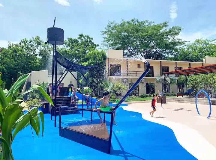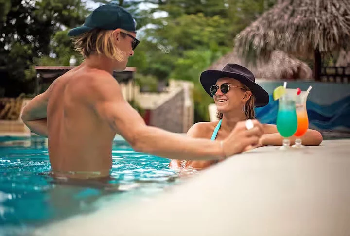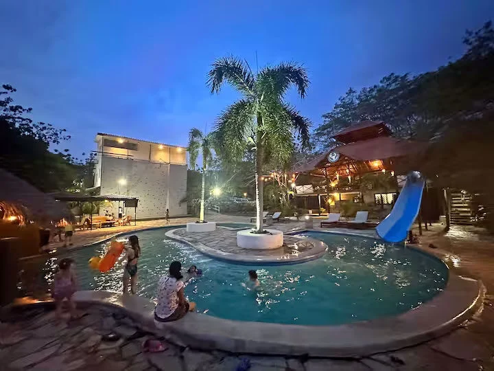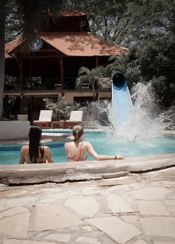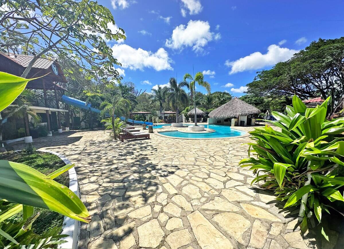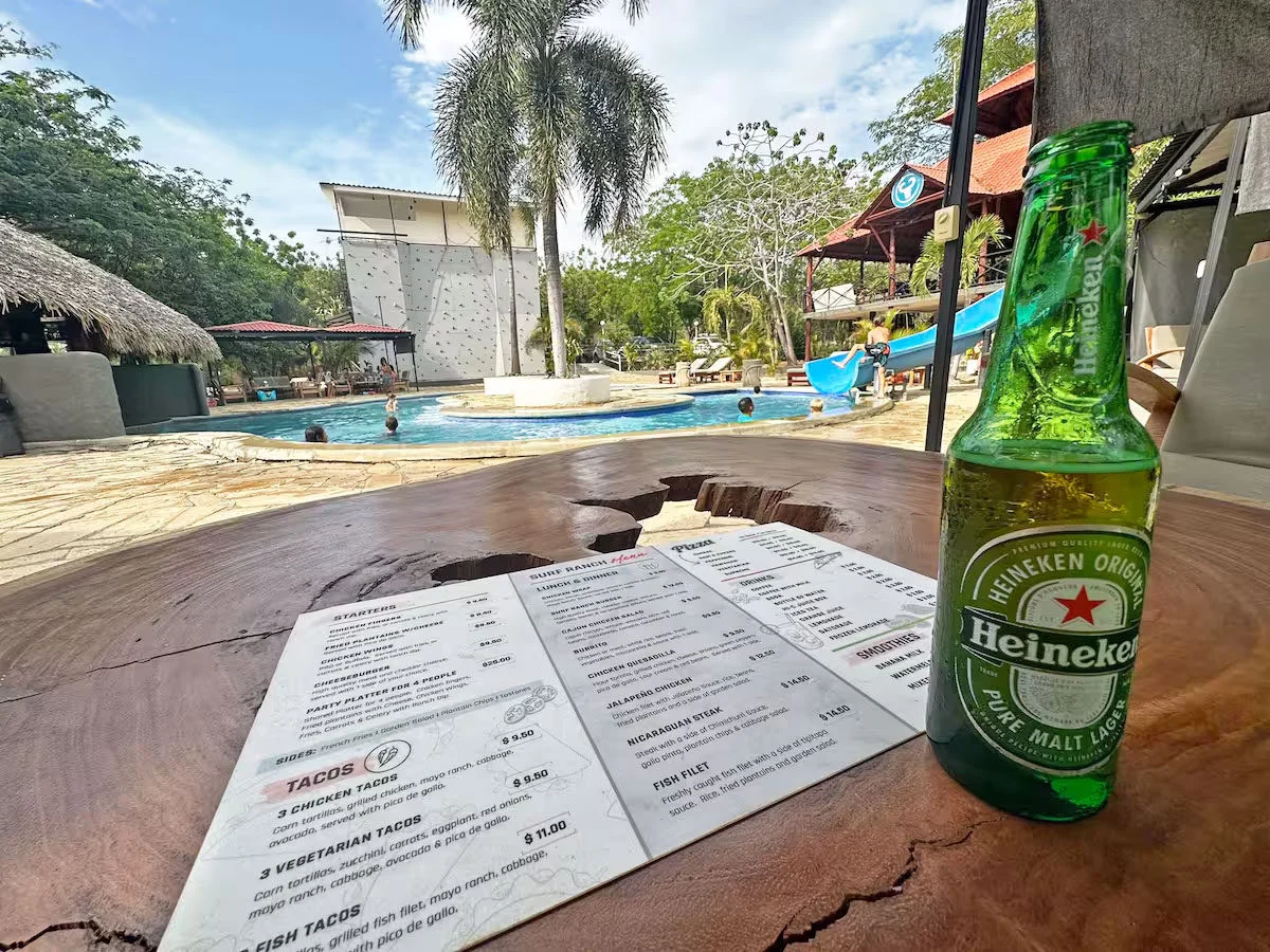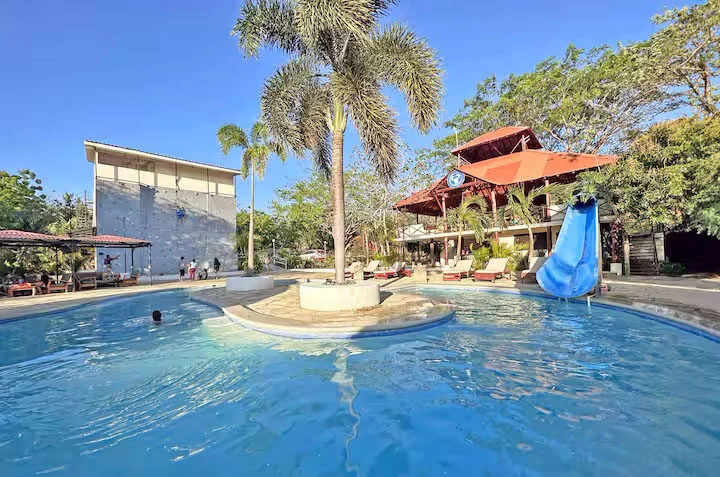 You will have free breakfast, and access to the resort including the pool, waterslide, restaurant, bar, swim up bar, volleyball court, water park splash pad, rock climbing wall, gym, skate shop and skatepark.