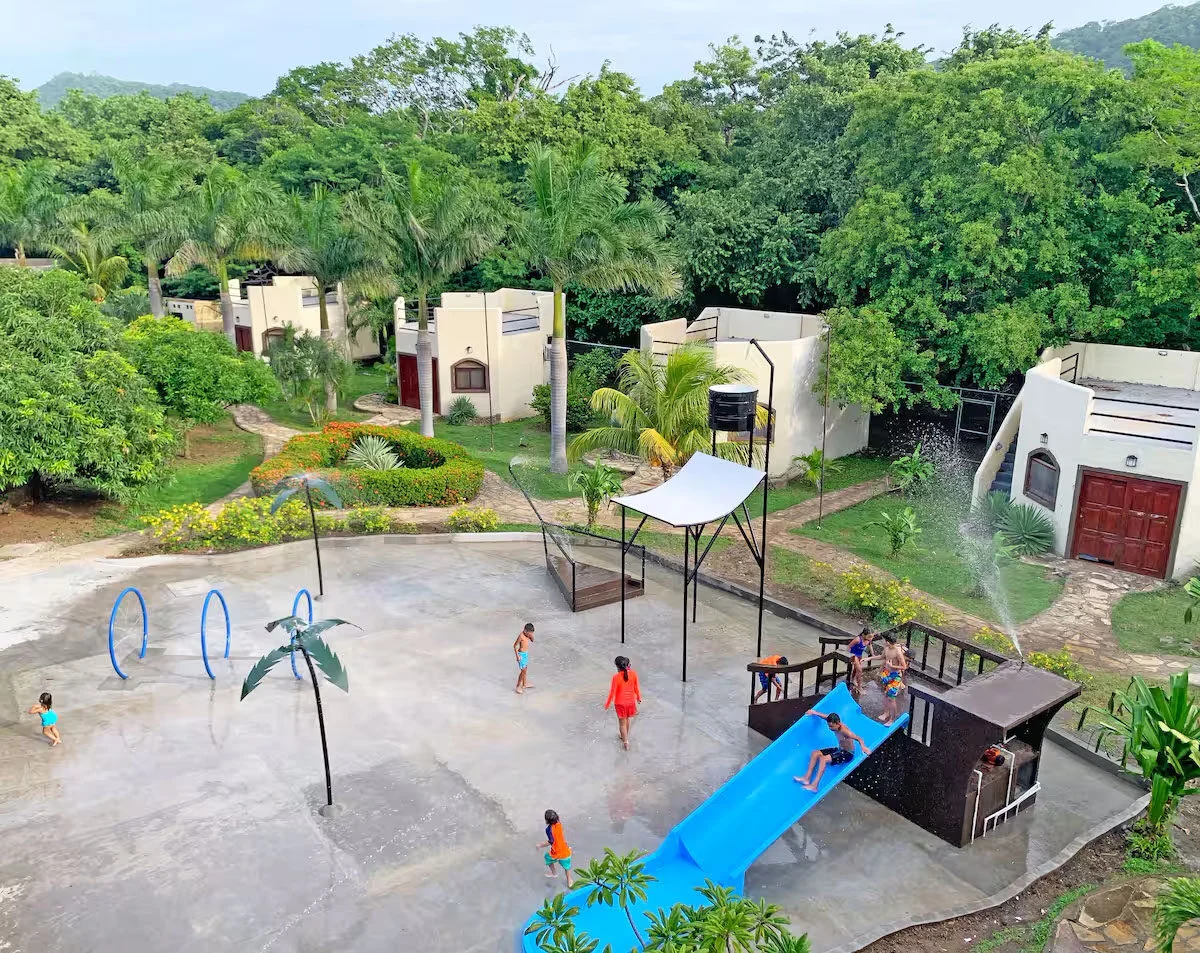 You will have free breakfast, and access to the resort including the pool, waterslide, restaurant, bar, swim up bar, volleyball court, water park splash pad, rock climbing wall, gym, skate shop and skatepark.