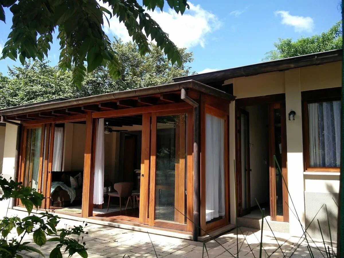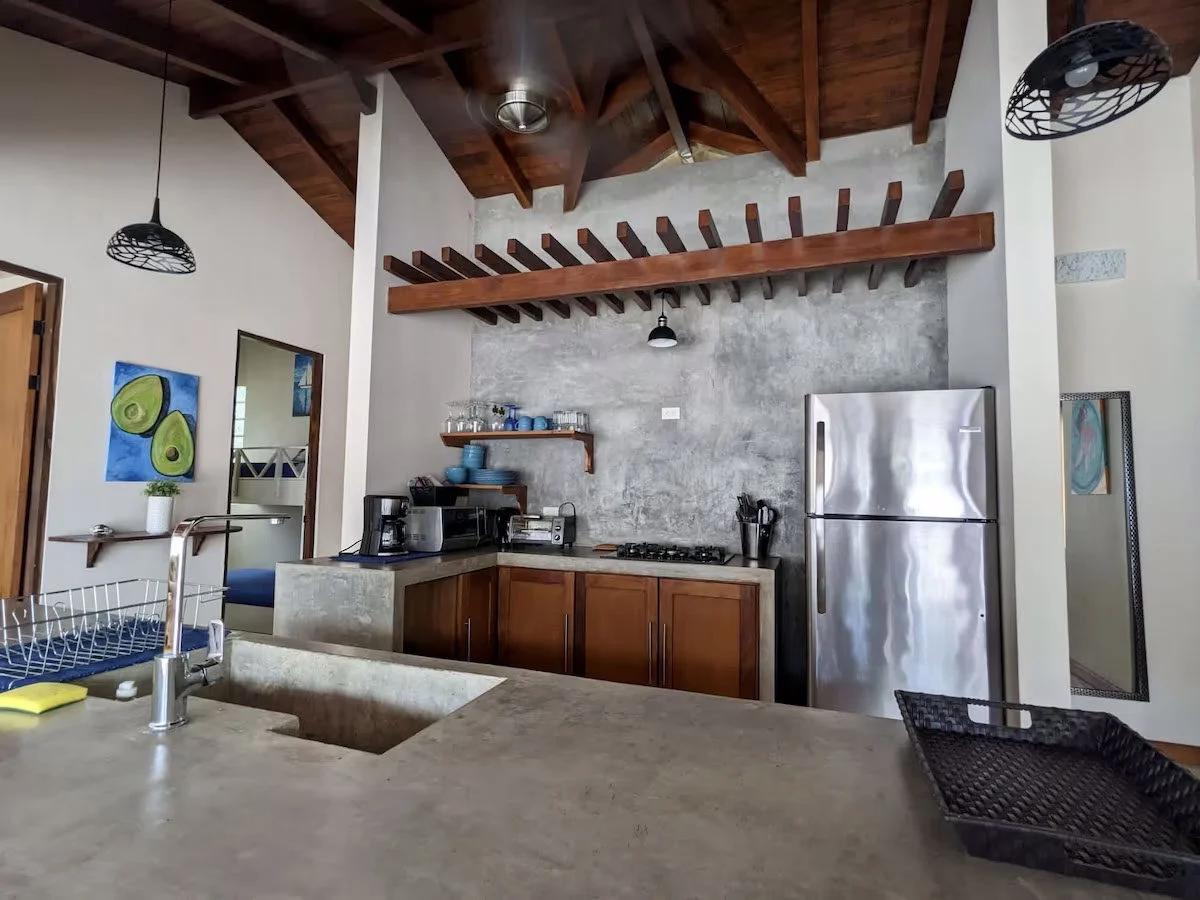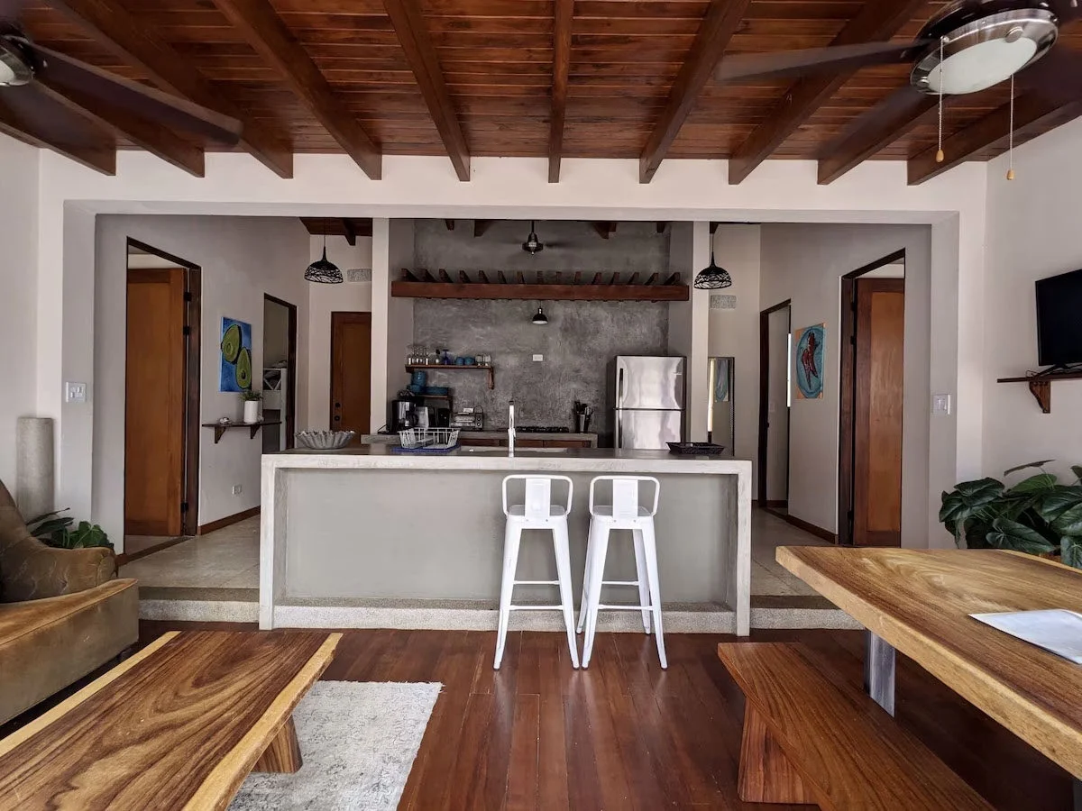 Beachwalk 5 is one of five Tropical 1000 square foot Villas nestled in nature in a gated small development in Avellanas. There is a SEASONAL jungle trail through the estuary to the beach during the dry months.