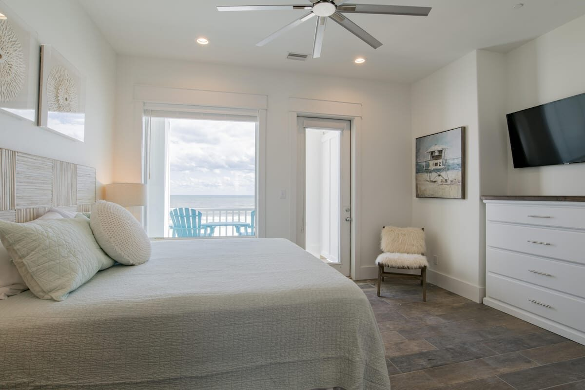 Get ready to sink your toes into soft sands and feel the Gulf breeze on your sun-kissed skin. When you’ve fully soaked in Mother Nature’s splendor, retreat back into your air-conditioned palace on the beach and take in the magnificent views to the east and west in total cool comfort. Sip an icy sunset drink on one of many private balconies suspended over the Gulf. Then, after eating dinner with your favorite people, go for an evening swim under the stars in your private pool, or settle in for a movie night in the living area.